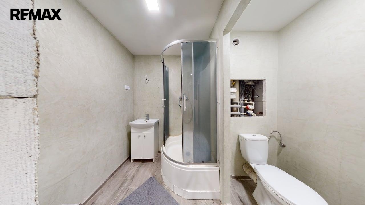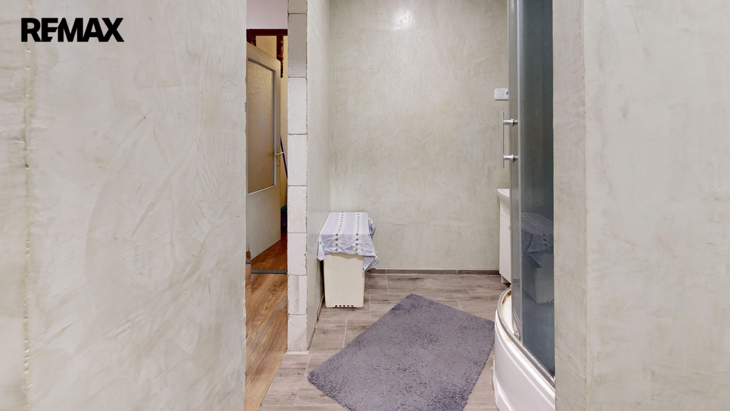 Prostorná vstupní hala, koupelna se sprchovým koutem a WC.