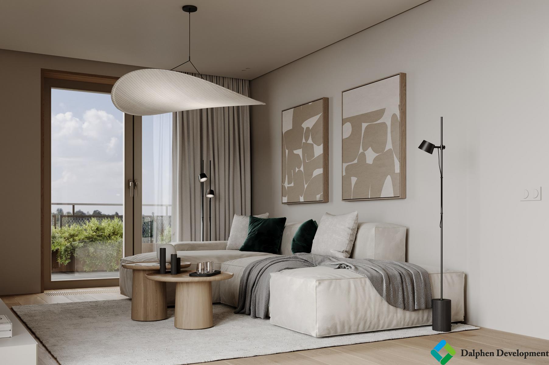 Dům nabízí pohodlné bydlení páru s jedním dítětem, velký důraz je kladen na maximální využití prostoru. Dispoziční uspořádání je 3+kk s podlahovou plochou 66 m2. Ze zádveří je vstup do obytné části, pokoje a do koupelny s WC, jejichž součástí je i technická místnost. Zdroj tepla je situován v prostoru technické místnosti. Zde se předpokládá také umístění pračky, případně sušičky. K domu patří parkovací stání. Podle vybrané varianty je součástí bytu i zahrada s terasou či prostorná lodžie pro byt v 2. NP.