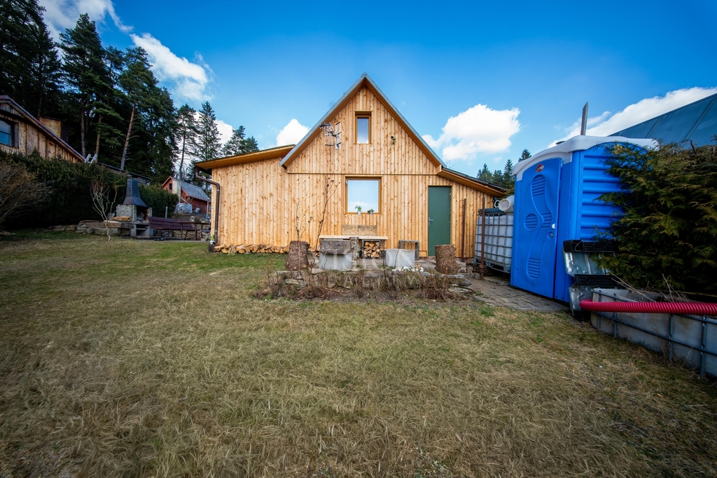 K dispozici je venkovní chemické WC, koupelna není vybudována a tudíž máte prostor pro vlastní realizaci. Pod chatou se nachází malý nebesák vhodný k relaxaci i případnému chovu ryb (po dohodě s obcí).