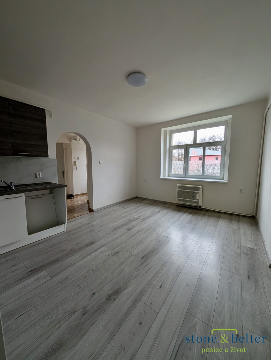 Dispozice bytu zahrnuje prostornou ložnici, světlou kuchyň s obývacím prostorem dále chodbu, koupelnu, samostatné WC a komoru. Vytápění je zajištěno plynovými gamaty, ohřev vody elektrickým bojlerem. Součástí domu je udržovaná společná zahrada. Parkování přímo před domem.