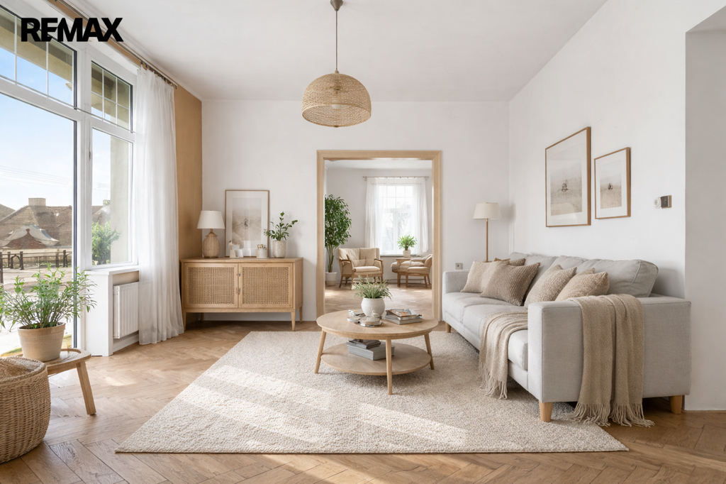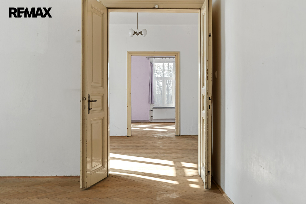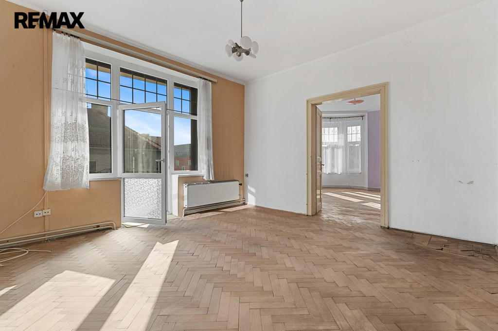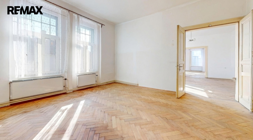 Nabídka, o kterou se zajímáte má pár jednoduchých údajů. Byt 3+1 s lodžií a několika menšími úložnými prostory, velkorysá výměra samotného bytu včetně příslušenství činí 126,4 m2. Oním příslušenstvím je sklep čítající 13,6 m2. Na samotný byt s lodžií, která má přes 5 m2 tedy připadá skoro 113 m2 obytného prostoru, který po dlouhá léta neprošel zásadní renovací či rekonstrukcí. Potenciál, který se bytě skrývá, tak před ním neutečete. Tak například pomyslný střed bytu. Jsou zde dvě komory, které lze dispoziční úpravou včlenit do bytu. Může zde být koupelna nebo jimi rozšířit kuchyň a vytvořit tak velkorysé srdce domova s velkým stolem. Stvořit tak místo, kde se rodina setkává, kde se klábosí s návštěvami, kde trávíte s blízkými čas oběda, snídaní, večeří. Prostor bytu je sám o sobě velkorysý a prostorný. Zde teprve pochopíte rozdíl mezi panelovým bytem a jedinečným a individuálně řešeným prostorem. Mimo jiné – české designové sklo v podobě lustru se bude na vysokém stropě skutečně vyjímat. A co teprve obraz nebo velkoformátová fotka z vašich cest.