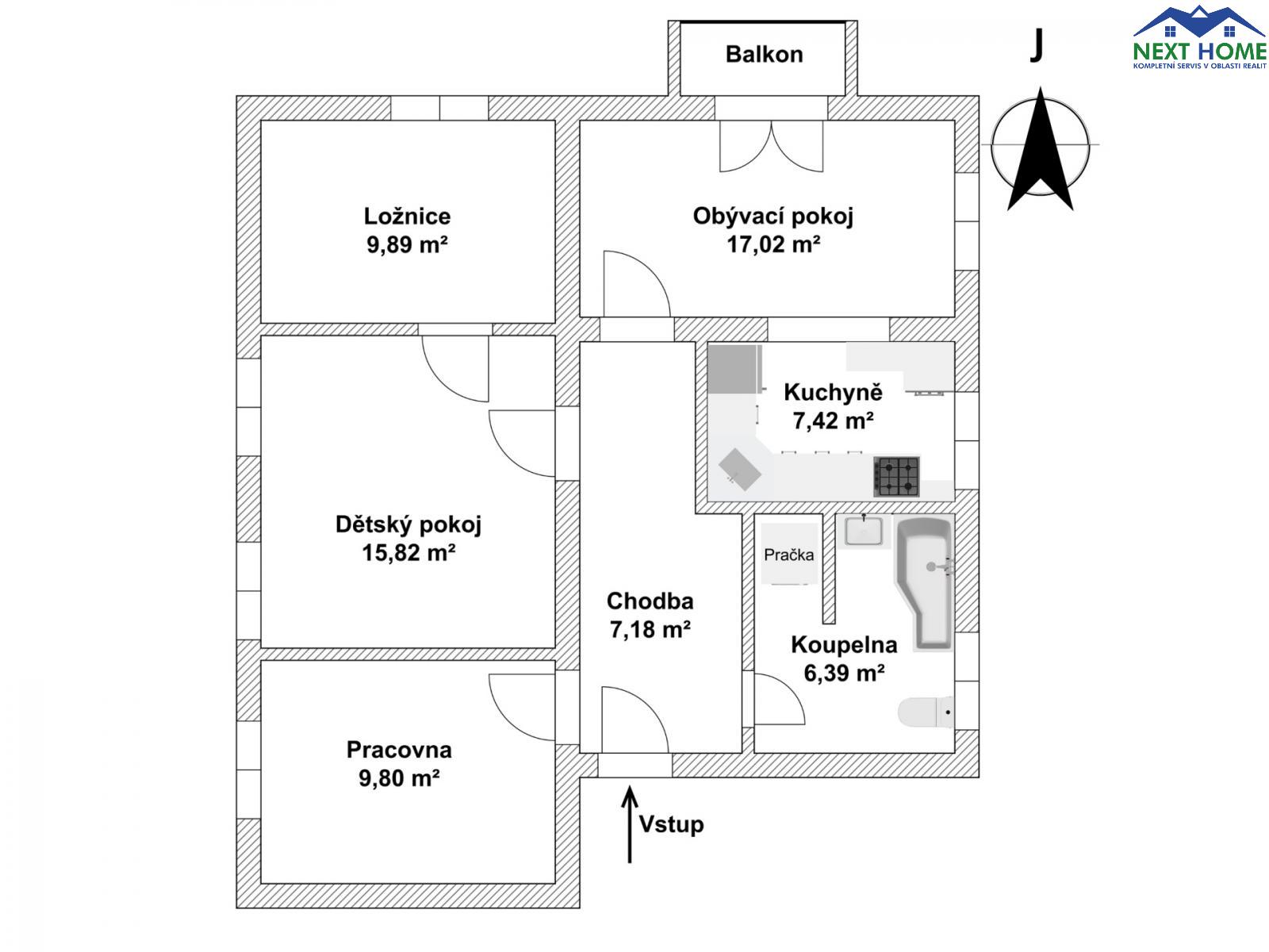 Prodej byt cihla, balkon, 4+kk, OV, 73 m2, ul. U Nadjezdu, Lovosice.