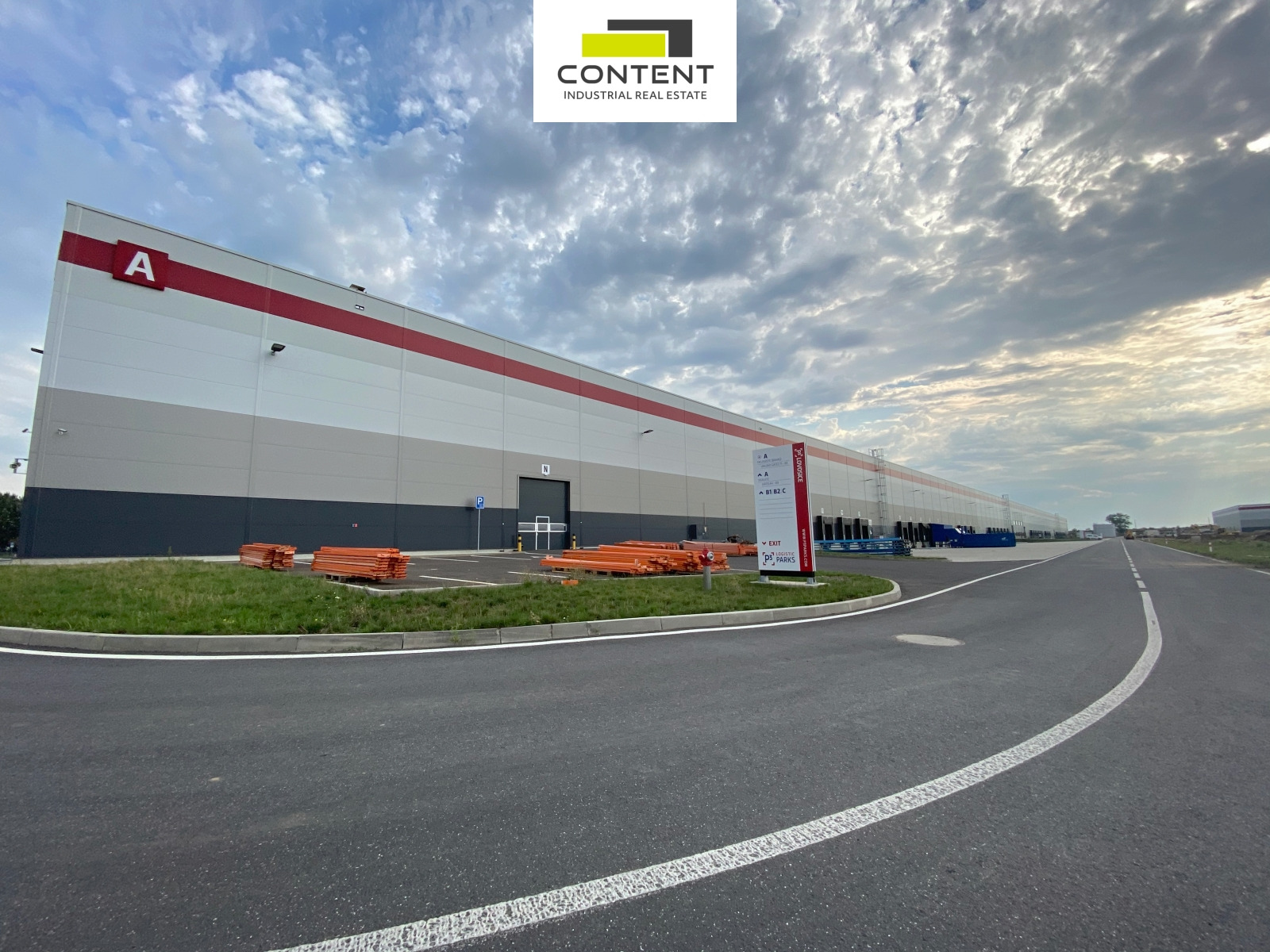 V zastoupení majitele a bez provize nabízíme novostavbu skladu nebo výrobních prostor, umístěných v moderním komerčním areálu s ostrahou, u sjezdu č. 45 z dálnice D8. K dispozici až 14562 m².