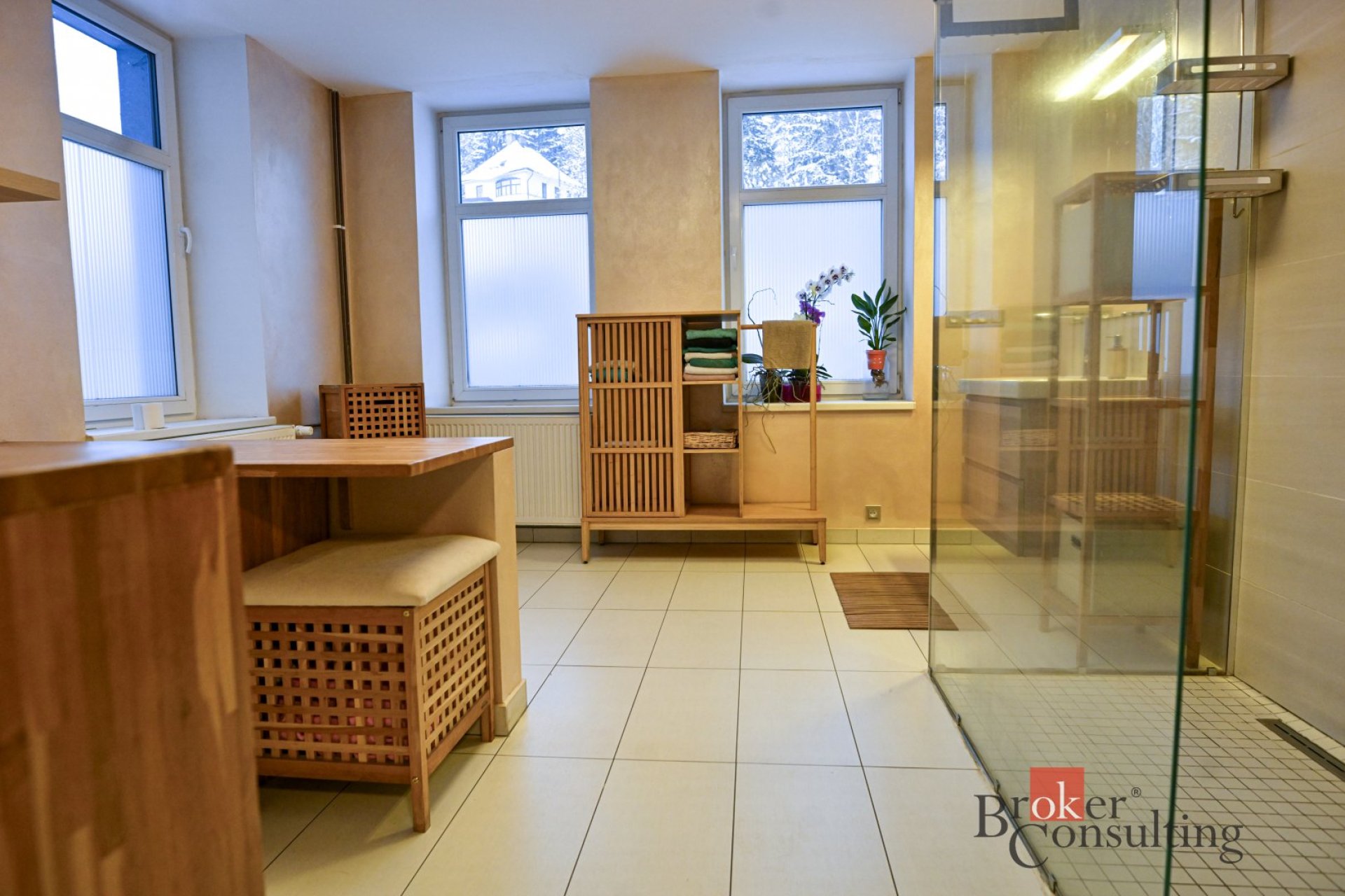 - sprchový kout a prádelna