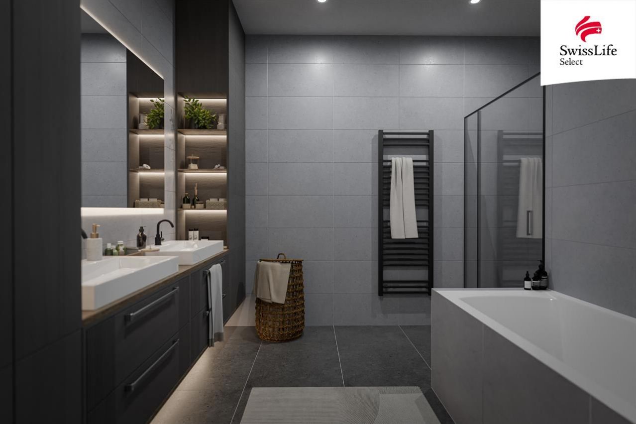 Zde konkrétně se jedná o spodní byt ve 2. podzemním podlaží. Byt disponuje prostornou terasou o výměře 40 metrů, která je částečně zastřešena pergolou. K bytu náleží jedno parkovací stání a zahrada za domem o výměře 165 metrů.