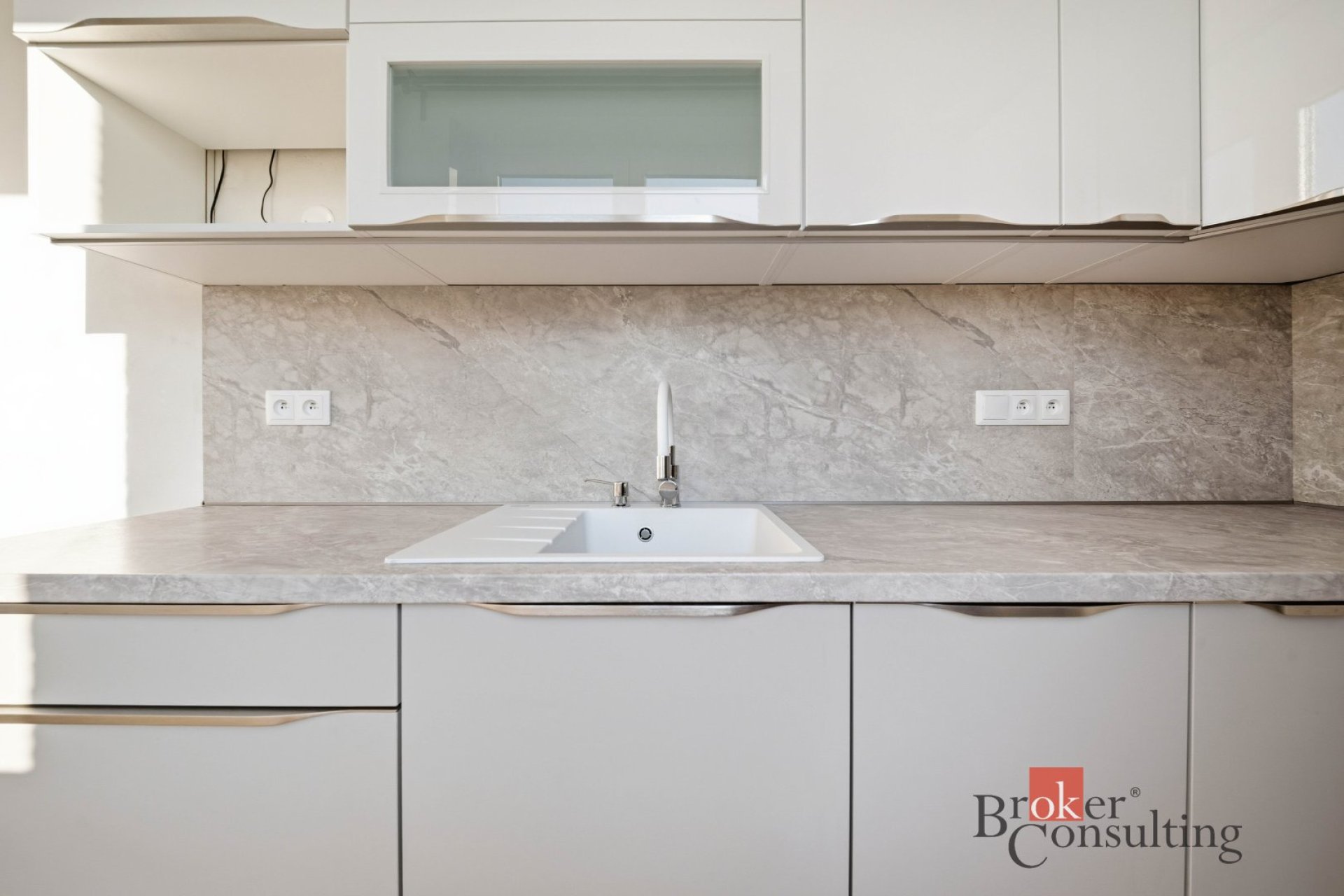 Byt se pronajímá bez vybavení, k dispozici zůstává pouze kuchyňská linka včetně vestavné trouby, myčky a indukční varné desky. Součástí bytu je také sklep o velikosti 3 m² a možnost využití společné sušárny na zateplené půdě.