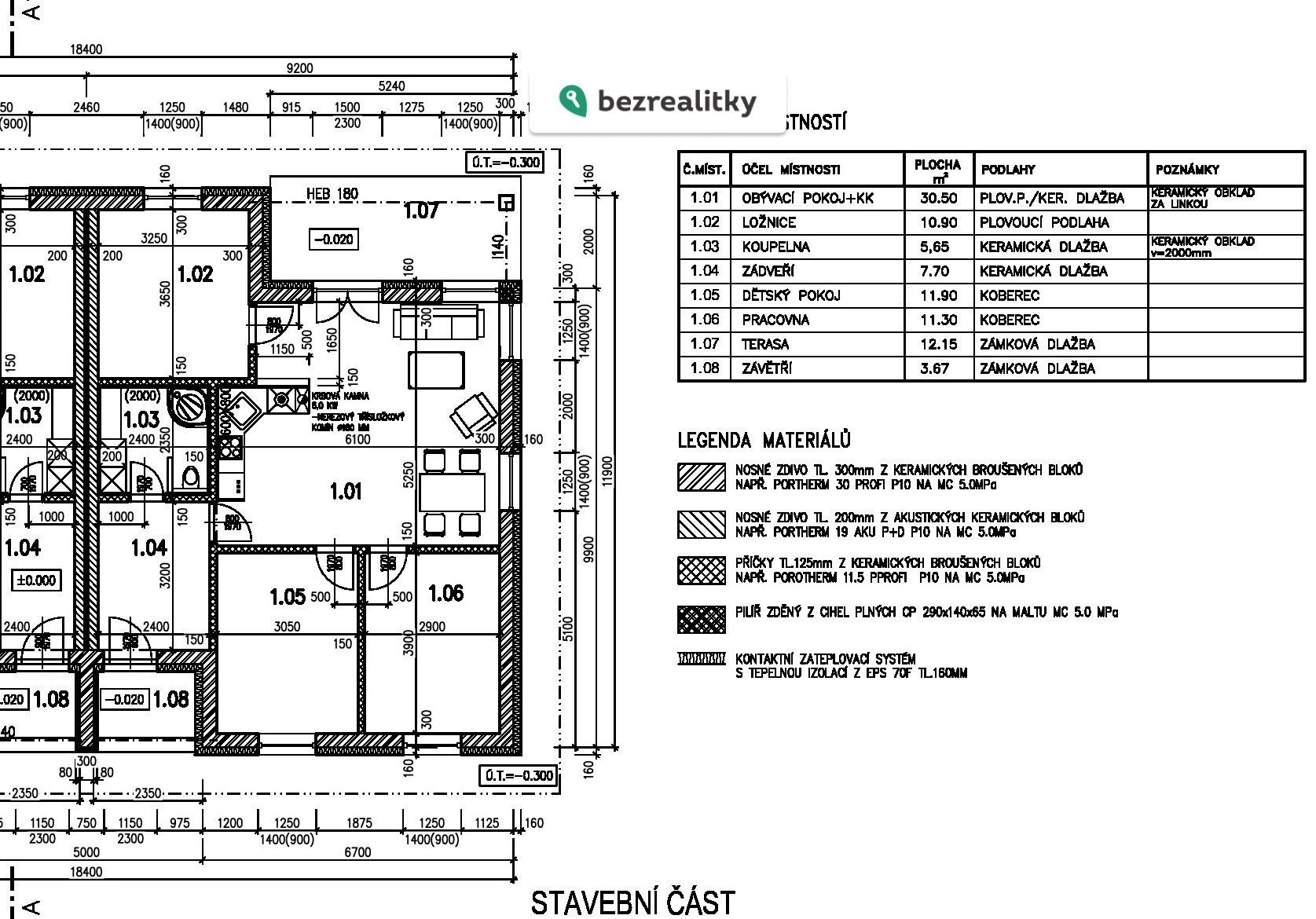 - Zastavěná plocha: 115 m²