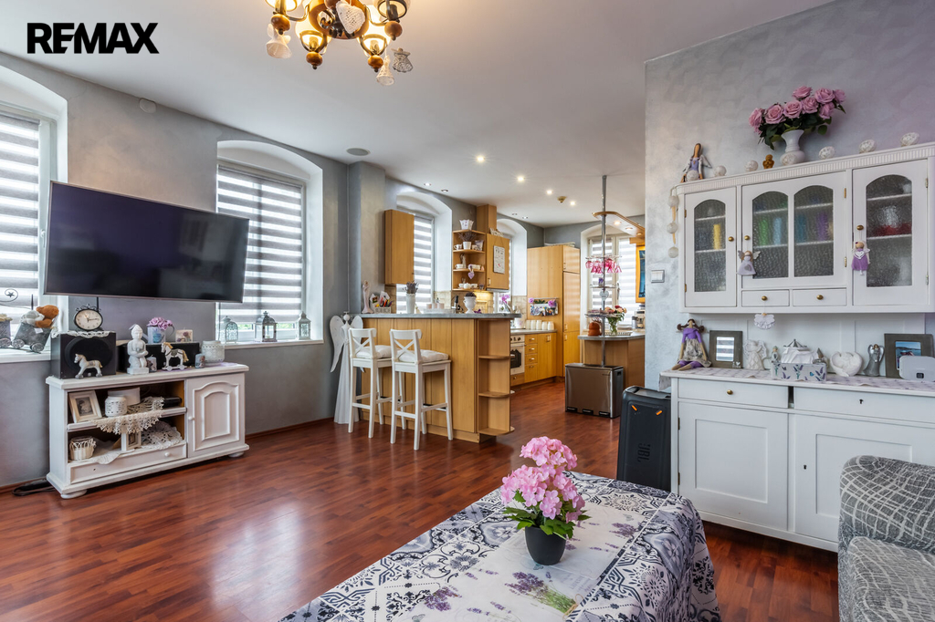 byt č. 1 mezonet 5+1, 132 m², byt č. 2 mezonet 4+1, 124 m², byt č. 3 3+kk, 40 m², byt č. 4 6+1, 168 m² s možností rozdělení na dvě samostatné jednotky, byt č. 5 3+1, 60 m², byt č. 6 2+1, 71 m², byt č. 7 1+kk, 13 m². Součástí objektu je také krásný pískovcový sklep o dvou místnostech (41 m²).