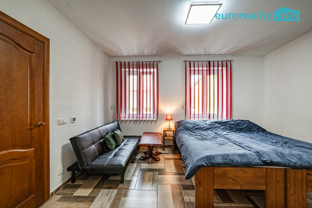 Celkem 6 plně vybavených pokojů s vlastním sociálním zařízením, možnost propojení do dispozice 2+1. Součástí je wellness zóna se saunou (6 osob), vířivkou (6 osob) a zimní zahradou (40 m²) dokončená v roce 2022.