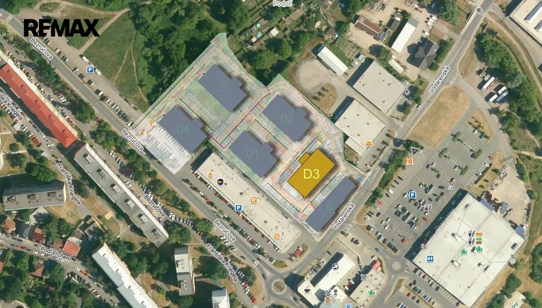 Celkem 53 bytových jednotek v objektu D3 (osobní vlastnictví) je navrženo v dispozicích 1+kk, 2+kk, 3+kk a 4+kk s plochami od 29 m² do 92 m².
