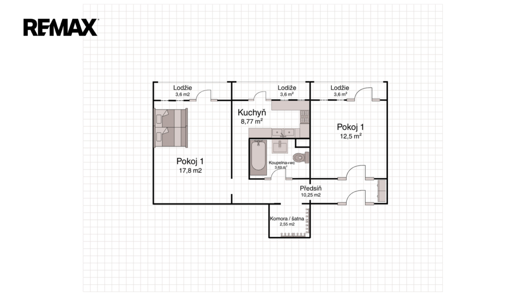 - Dispozice bytu: 2+1
