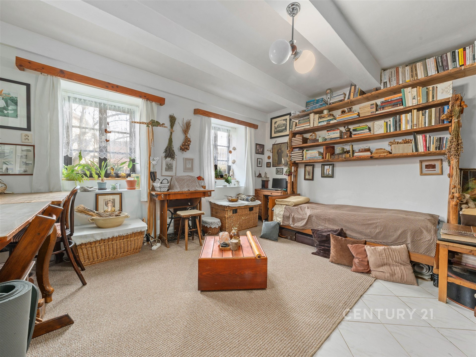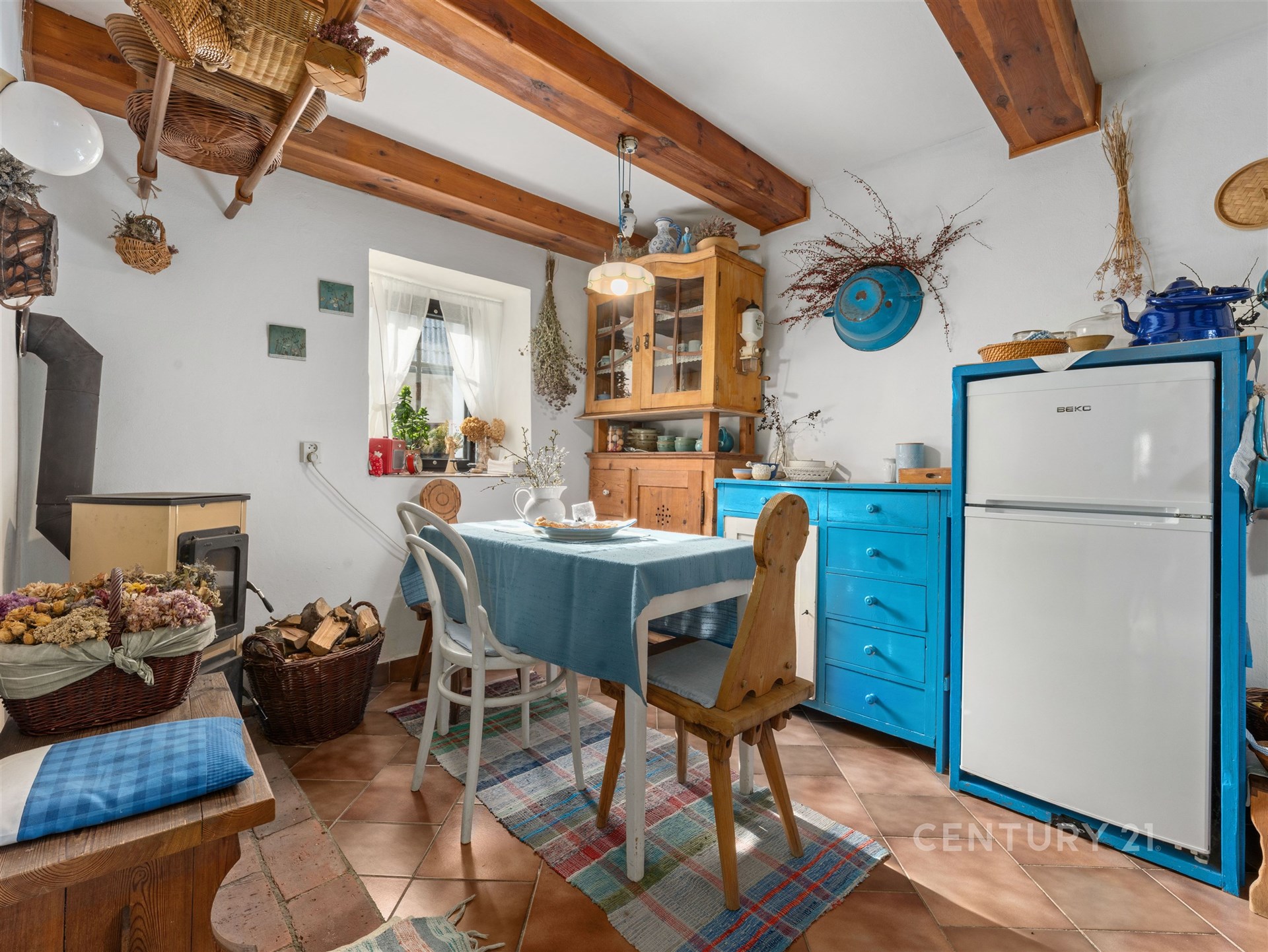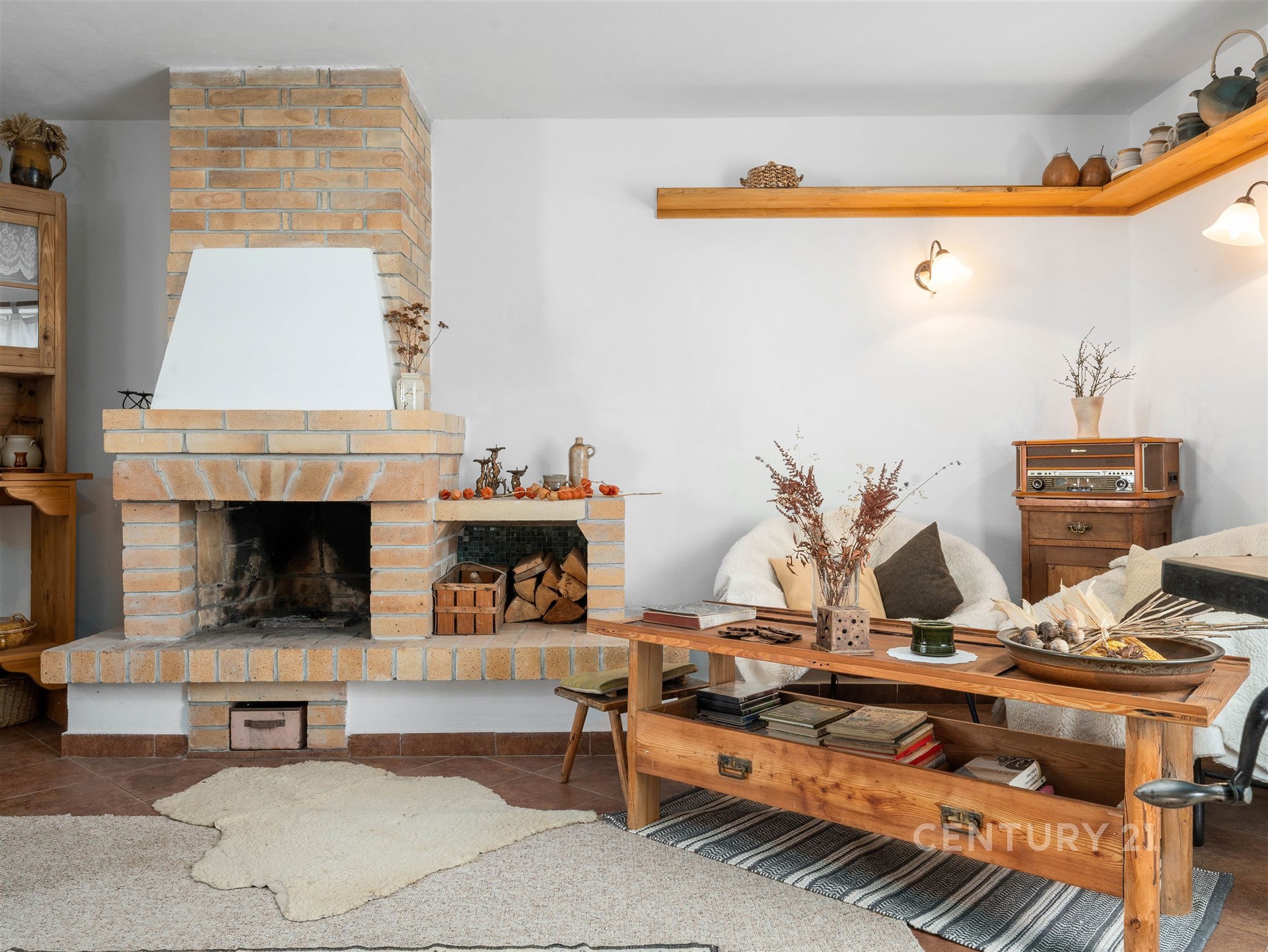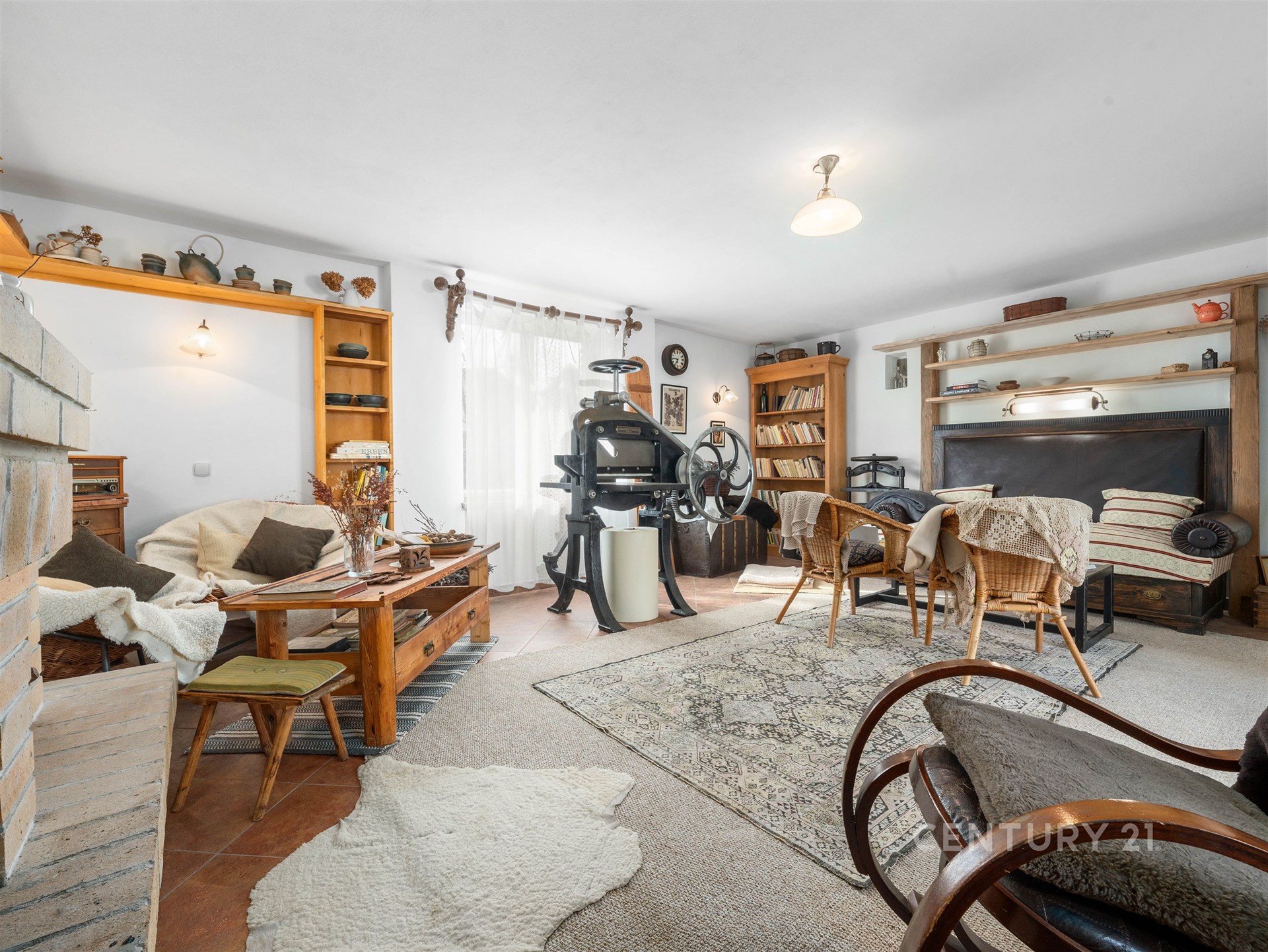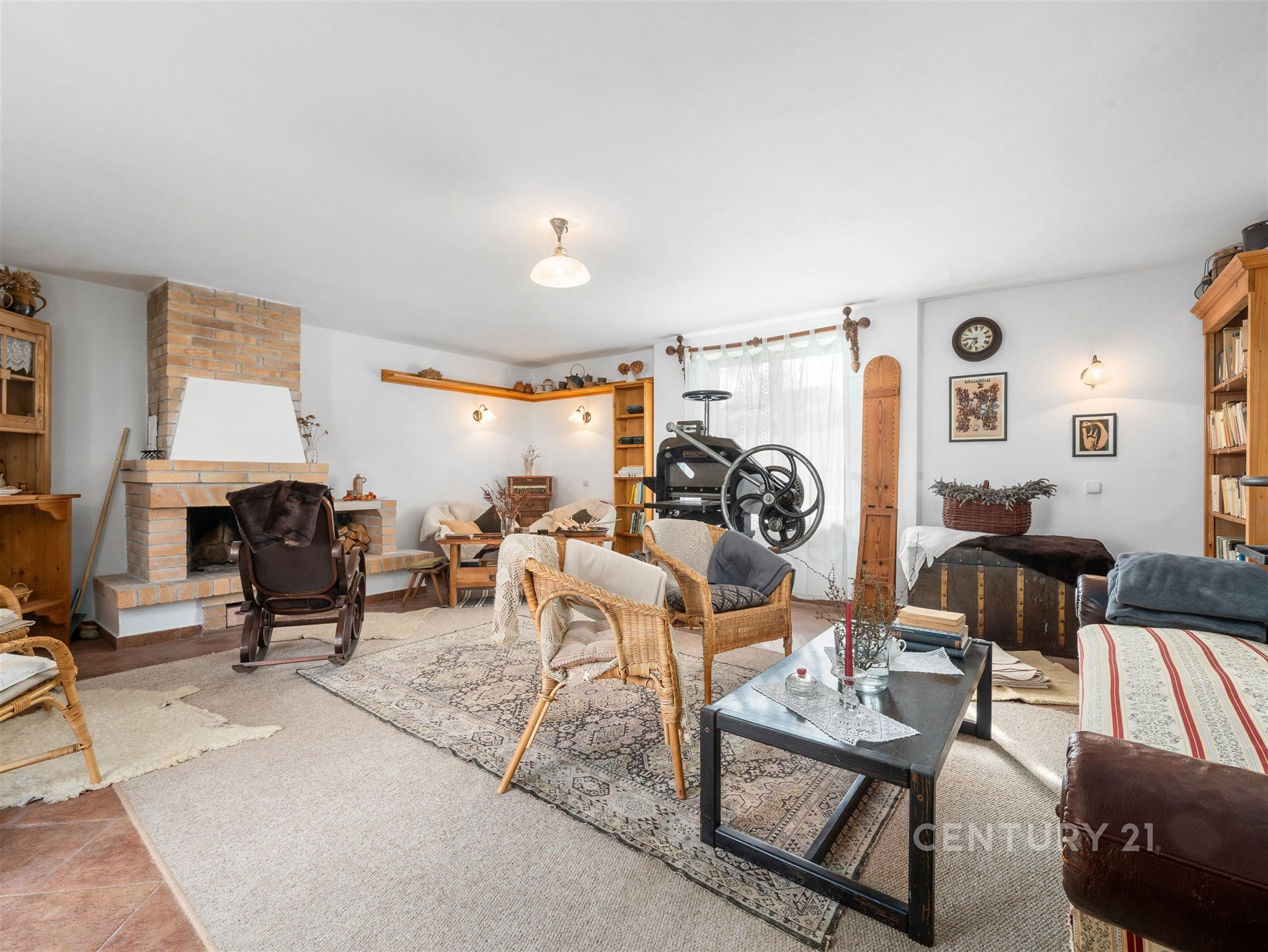 Tím srdcem je i tato stylová místnost pro posezení. Ideální místo, kde se všichni potkáte u kávy nebo rodinné oslavy. Celý statek působí nesmírně útulně a je v takovém stavu, že se můžete okamžitě nastěhovat.