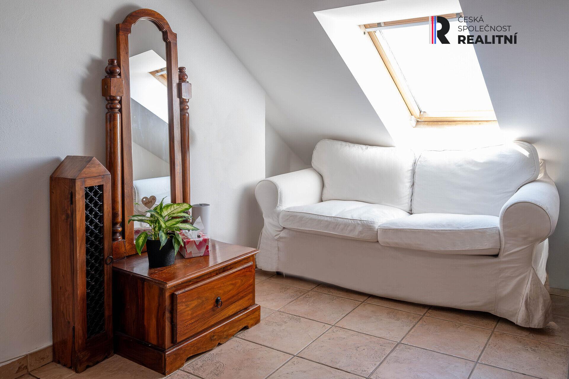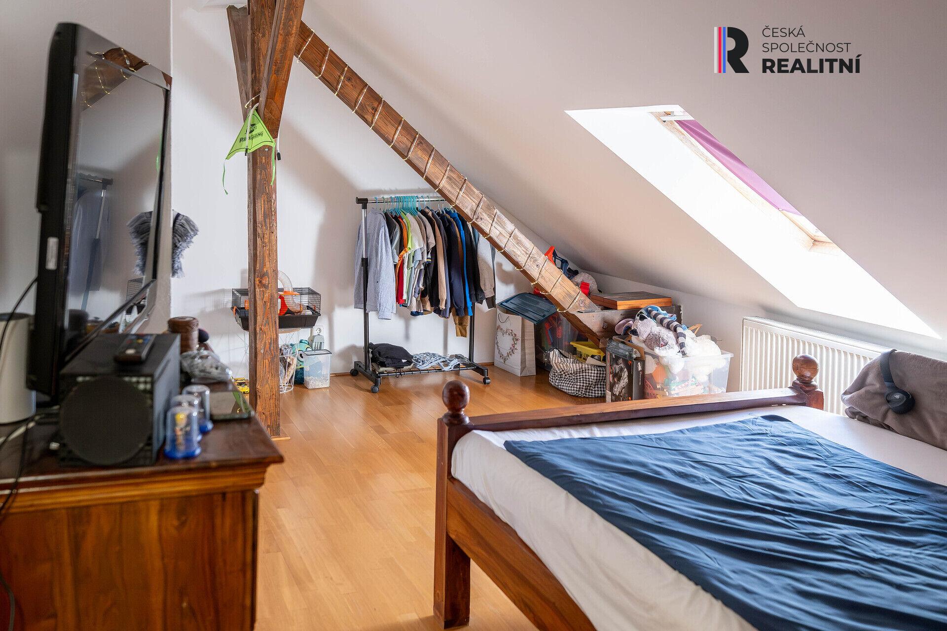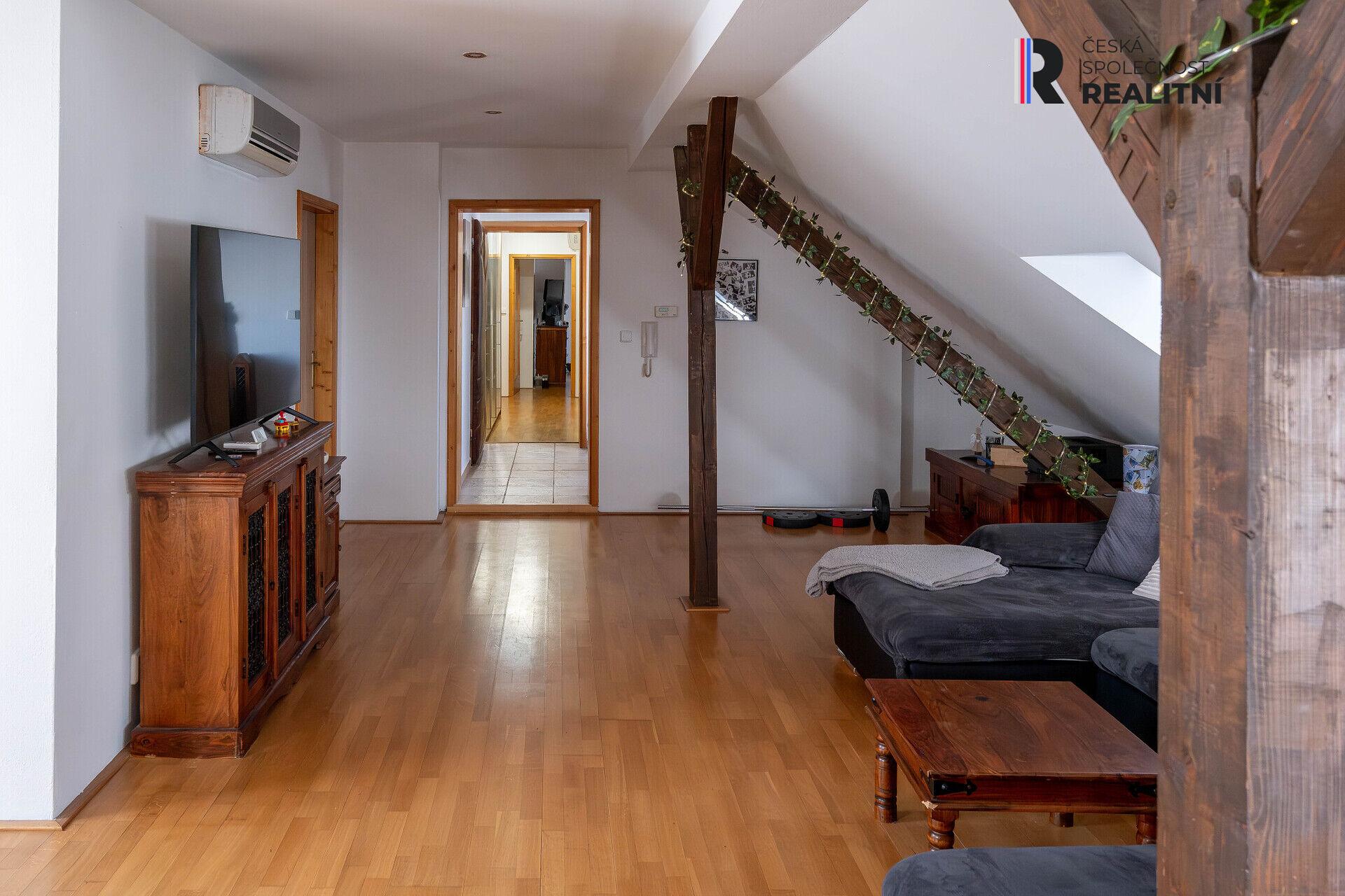 Byt vznikl vestavbou do půdního prostoru a zabírá celou délku domu, přibližně 24 metrů. Díky tomu nabízí netypické řešení prostoru a větší variabilitu využití jednotlivých místností. Dispozice je řešena jako 4+kk, přičemž jednotlivé části bytu na sebe navazují v podélném uspořádání. Prostor působí otevřeně a umožňuje případné úpravy dle potřeb nového vlastníka.