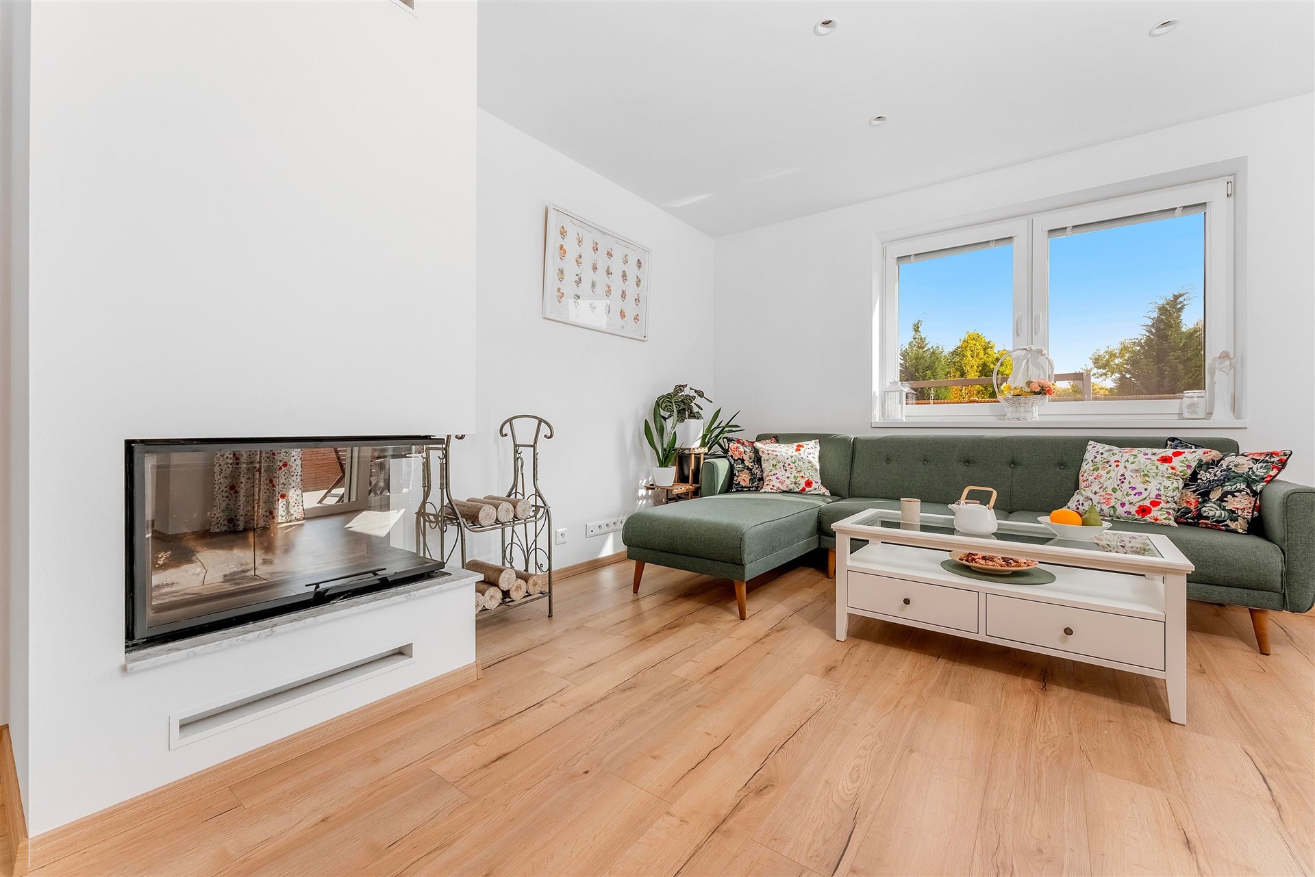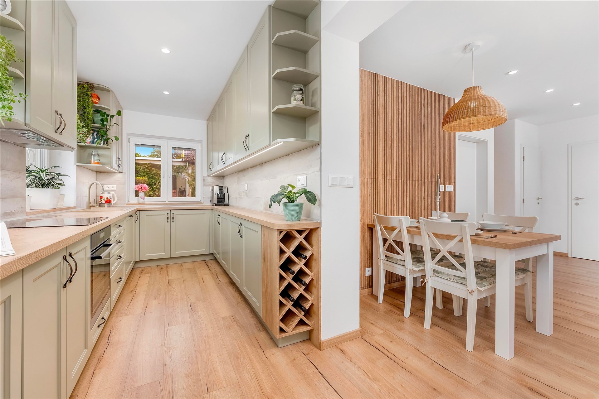 ___ Hlavní prostor domu tvoří obývací pokoj (26 m2) s přiléhající otevřenou kuchyní (10 m2). V kuchyni nová kuchyňská linka se všemi spotřebiči. Prostorný obývák zdobí stylový výkonný krb, přičemž teplo, které vytváří, je průduchy rozváděno do obou podlaží. Za portálovými balkónovými dveřmi navazuje na obývák jeho letní část, tj. zastřešená terasa s jídelním stolem, případně i s grilem, která tak zvětšuje obytný prostor domu o další metry.