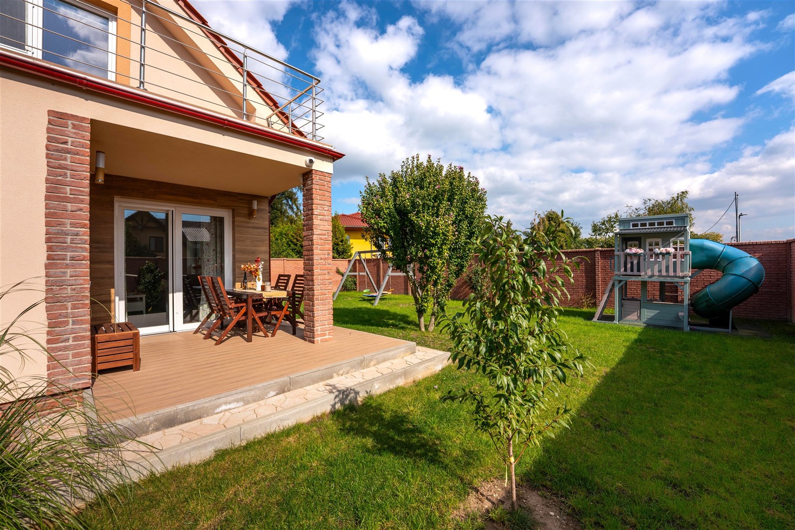 ___ Dvoupodlažní rohový dům se zahradou stojí na pozemku 399 m2 ve vyhledávané rezidenční oblasti nad městem. Původní dům z roku 1970 byl odstraněn a na jeho základech vystavěná novostavba byla dokončena v roce 2024. Dům je chráněn kamerovým systémem, je napojen na veřejný vodovod i kanalizaci, elektřina 220 i 380 V. Podlahové topení ve všech místnostech, spotřeba elektřiny (i díky krbu...) pouhých 3.000 Kč/měsíc.