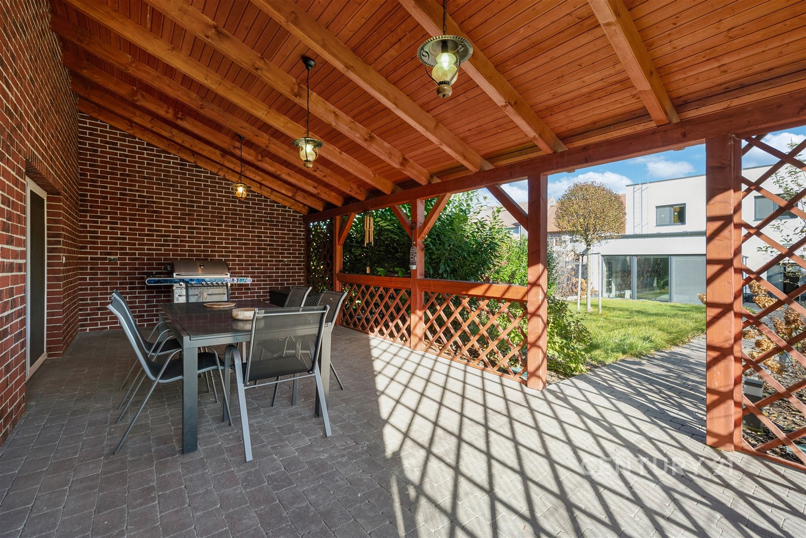 Velkou výhodou je také víceúrovňová zahrada s oddělenými částmi, které vytvářejí příjemné soukromé zóny. Krytá terasa poskytuje ideální místo pro pořádání akcí, menších setkání i relaxačních aktivit. Parkování je řešeno v garáži, průjezdu i před domem.