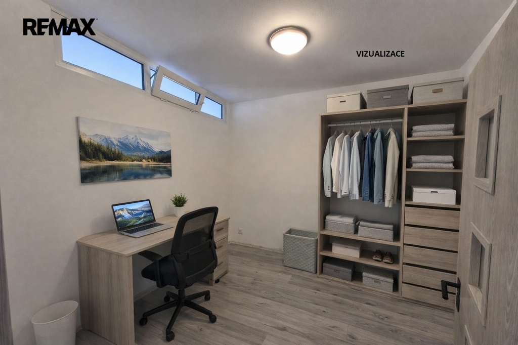 Byt prošel kompletní rekonstrukcí a je částečně vybaven. K dispozici je nová kuchyňská linka se sklokeramickou varnou deskou a horkovzdušnou troubou, vysoká úložná skříň nabízí dostatek prostoru pro umístění potravin či nádobí. Ložnice je vybavena romantickou kovou postelí a nočním stolkem. Přiložená vizualizace místností je pouze ilustrativní. Okna z obou místností jsou orientována na severní stranu, v letních měsících tak bude byt příjemně přistíněn. Výhled do přilehlého parku navíc zabezpečuje absolutní soukromí, bez pohledů ostatních sousedů. Bezproblémové parkování bez placených zón.