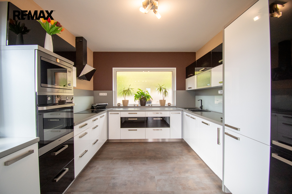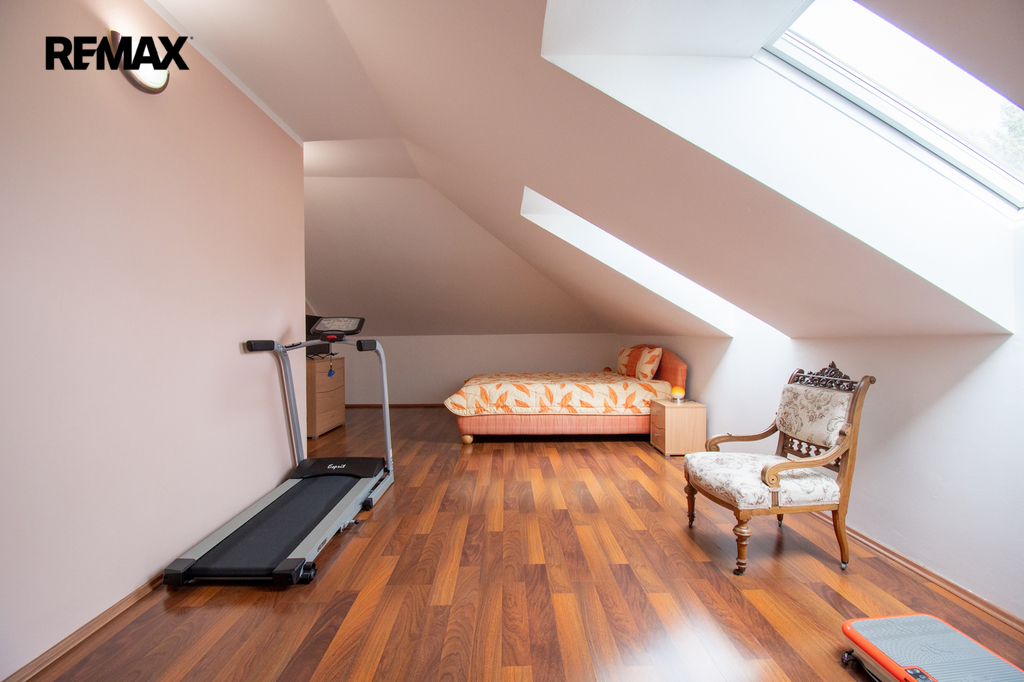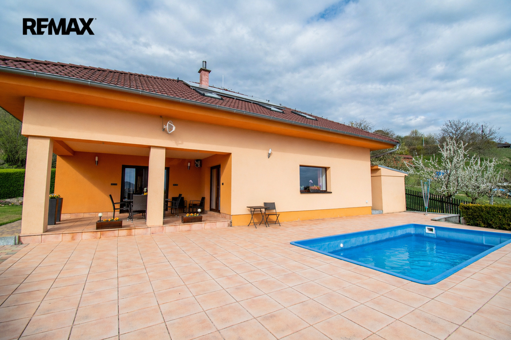 Rodinný dům s obytným podkrovím, garáže, okrasný pozemek, bazén, letní kuchyně, parkování