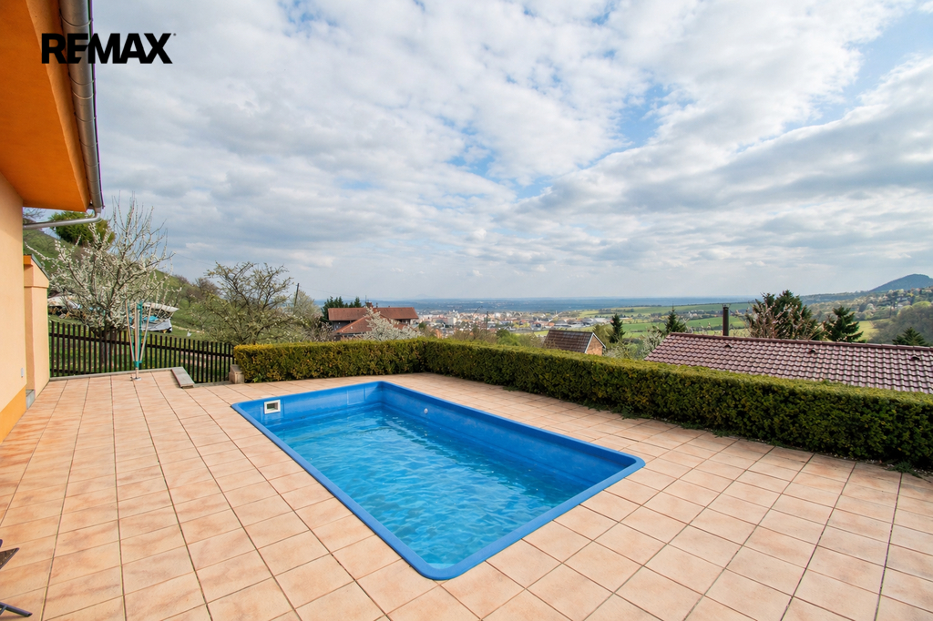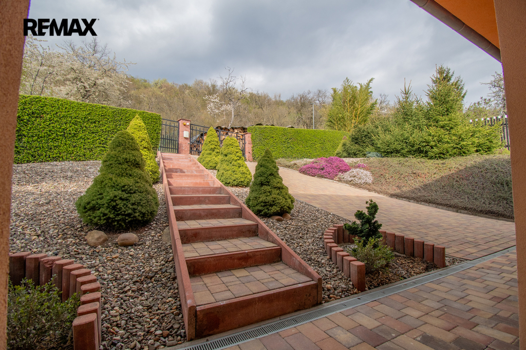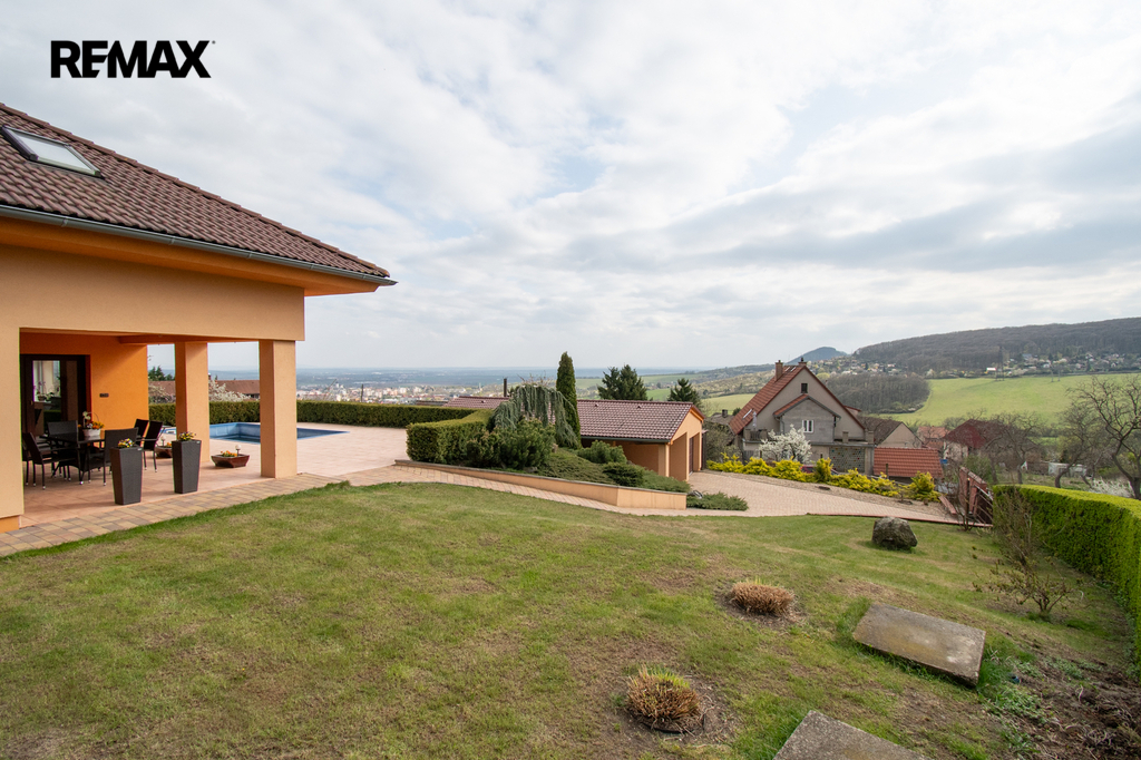 Dům byl kolaudován v roce 2017 a lze ho tedy zařadit k prodeji do kategorie novostaveb. Umístěn je na mírně svažitém pozemku o výměře 1501 m2 s otevřeným výhledem na Litoměřice a porta bohemiku. Zahrada domu nabízí značnou míru soukromí a terasa bude vaším odpočinkovým místem s výhledem. Vstup či vjezd je zajištěn hlavní branou s nájezdem ke garáži. Možný je vjezd a vstup z horní části domu kde je umístěn vjezd do garáže, která je součástí domu a plní funkci skladovacích prostor.
