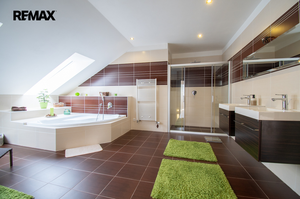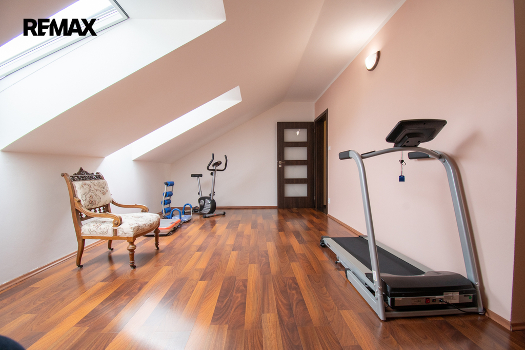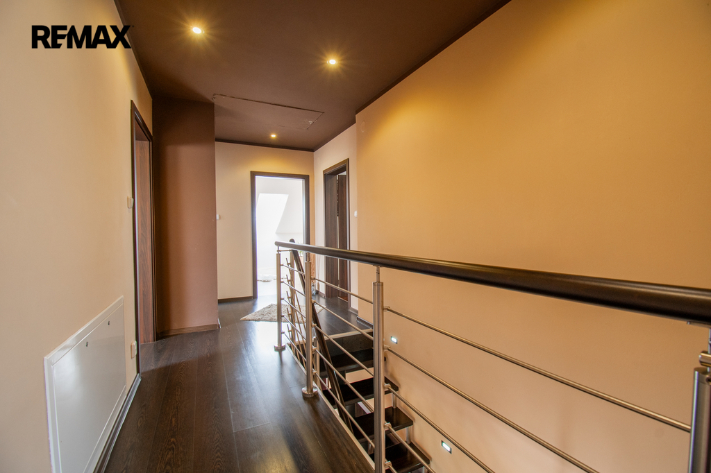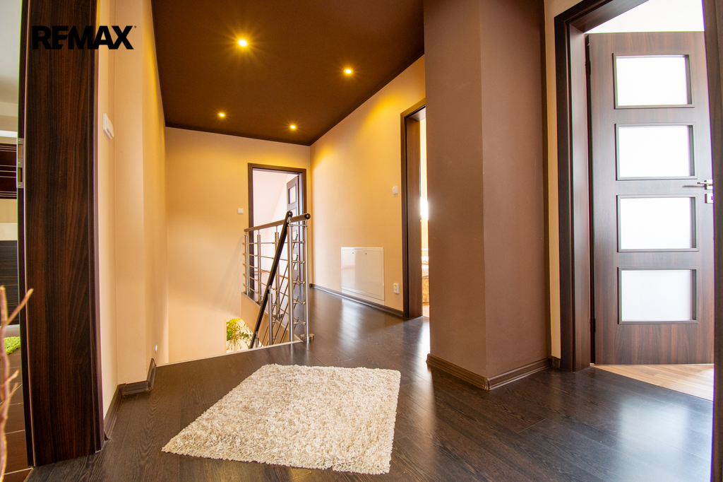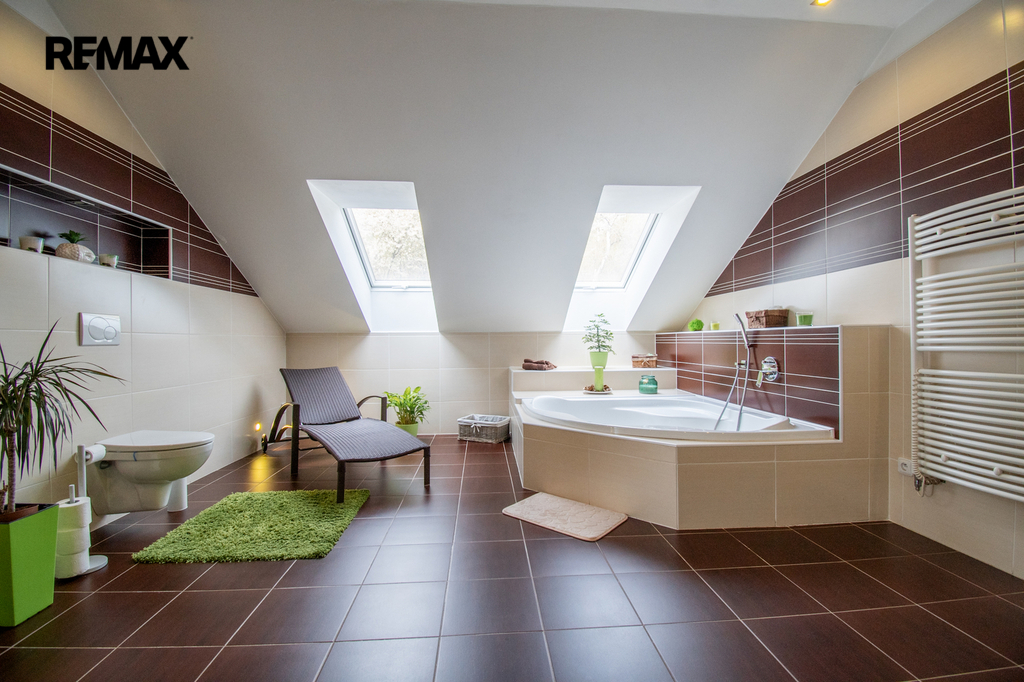 Prostor a dispozice. Dům nabízí celkem 237 m2 užitné plochy v dispozici 5+1 se vstupní chodbou, technickou místností a garáží. Umístit do ní můžete menší fitness, ateliér nebo kancelář.