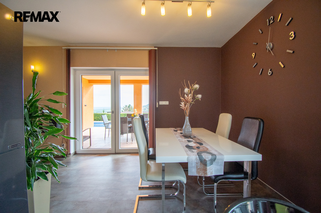Vybavení domu. Podlahové vytápění které je doplněno krbem opatřený výměníkem a k dispozici jsou čtyři solární panely pro předehřev teplé vody. Hlavním zdrojem vytápění je plynový kondenzační kotel, příprava pro tepelné čerpadlo. Předností nabídky je energetická třída B která se dá ještě vylepšit díky jižní orientaci a možné umístění fotovoltaické elektrárny. Nemovitost disponuje i přípravou na stínění / žaluzie.
