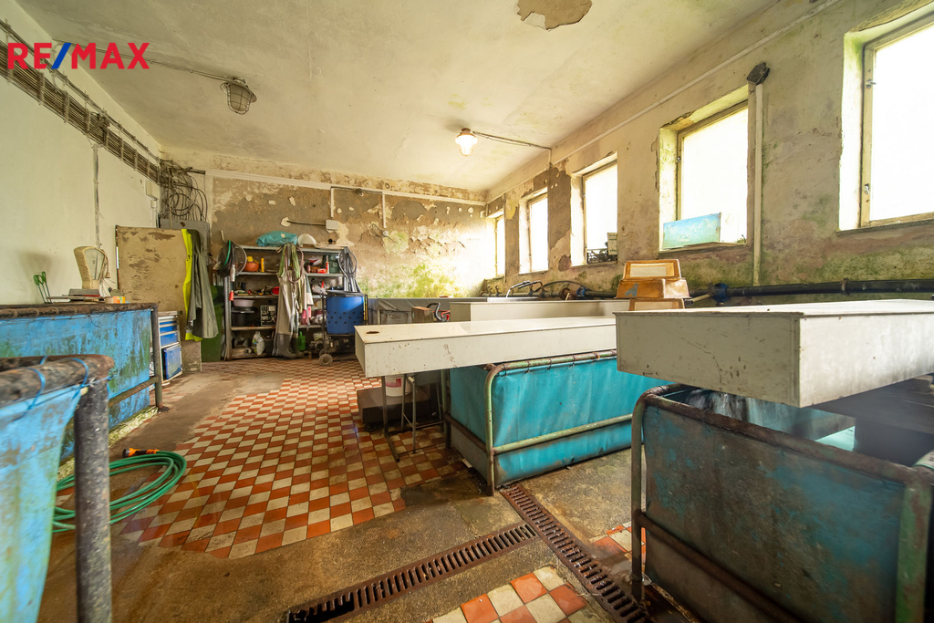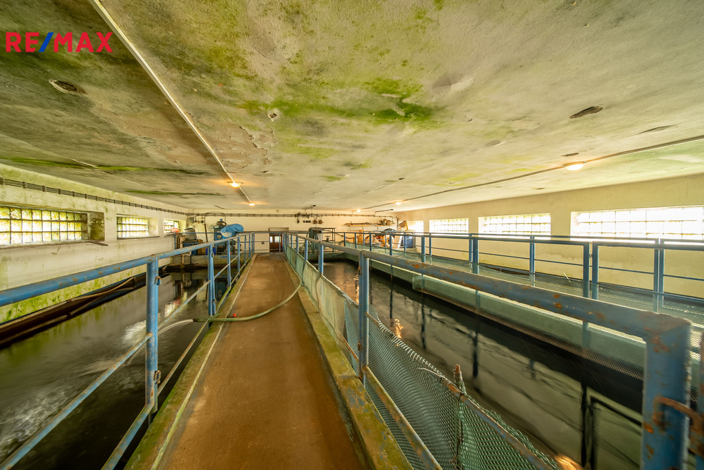 Objekt má ze 2/3 novou střechu - před 2 roky zde byly položeny asfaltové pásy. V budově je kotelna, ale objekt není vytápěn - jeho klima je ovlivněno teplotou vody v korytech. Další částí je žlabovna, která slouží k odchovu plůdku a produkci násadových ryb, sociální zázemí a skladovací prostory.