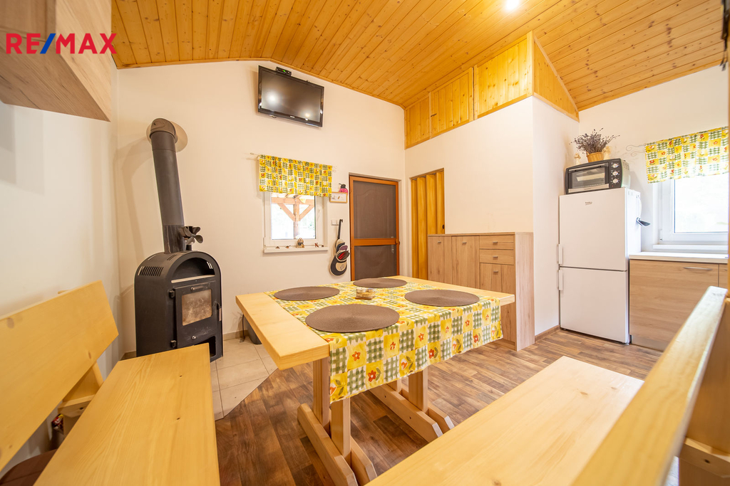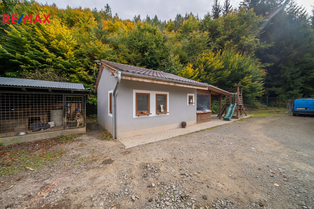 Zázemím pro chovatele je zděná chata ( 46 m2) s plechovou střechou, se zázemím pro kuchyňskou linkou (linka není součástí prodeje), sprchovým koutem, WC, patrovou postelí a posezením. Vytápěna je krbovými kamny, voda se ohřívá bojlerem (25 l).