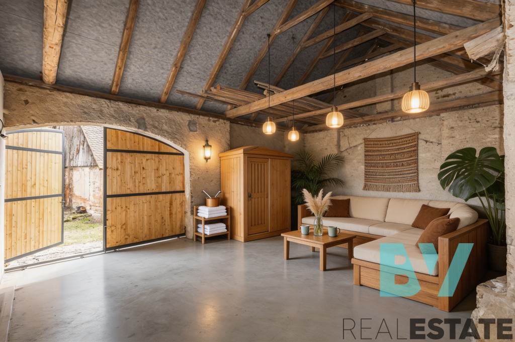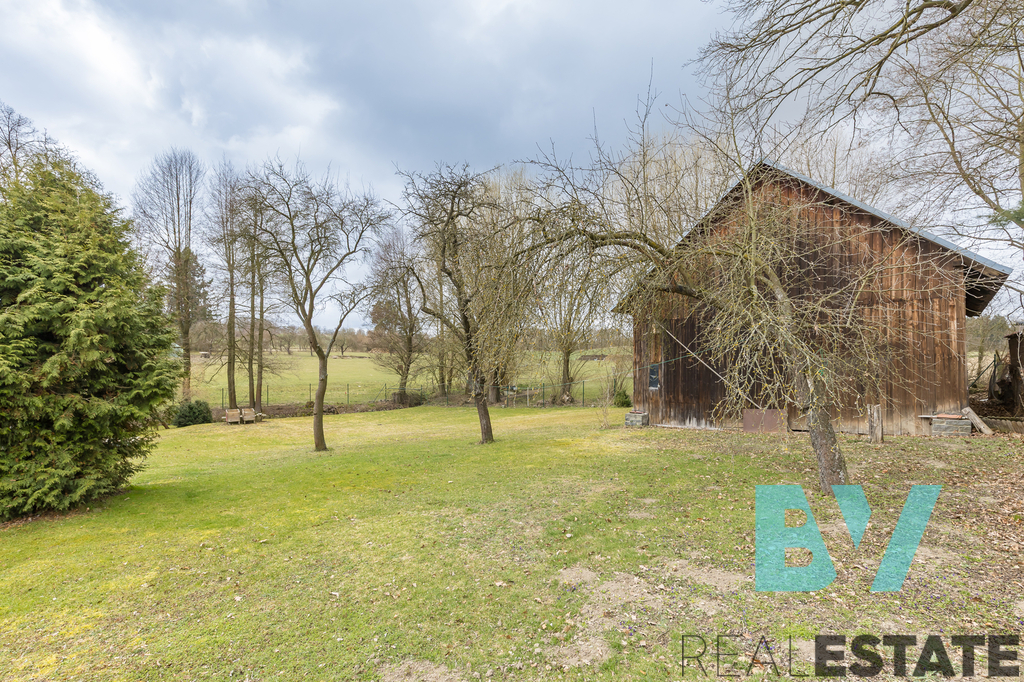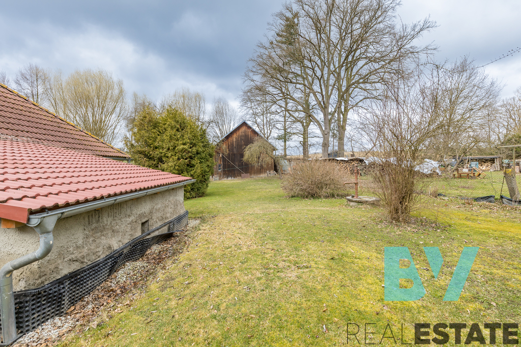 Velkým benefitem je podkroví, které nabízí možnost vybudování dalších 2 až 3 obytných místností dle potřeb budoucího majitele. Na obytnou část navazuje původní stodola se širokým průjezdem, která nabízí zajímavý potenciál pro další využití, například jako letní kuchyně, dílna, odpočinková zóna nebo jiné zázemí. Na pozemku se navíc nachází ještě další stodola v původním stavu s částečnou podezdívkou.