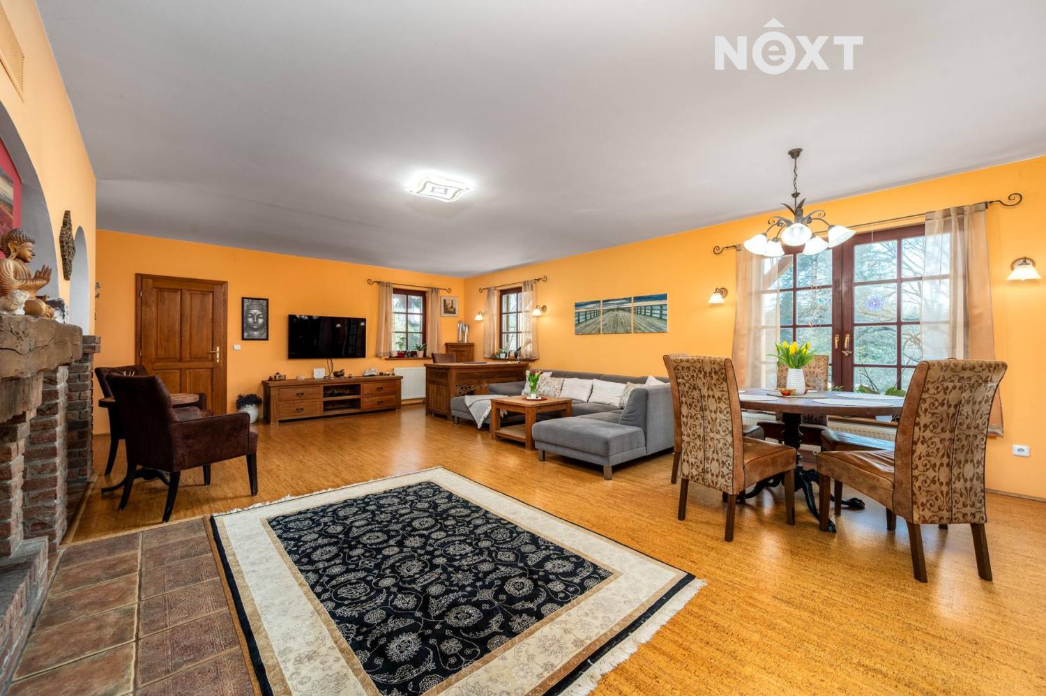 Srdcem domu je otevřený obytný prostor s krbem, který přirozeně propojuje zónu pro společná setkání s jídelnou a kuchyní. Velká francouzská okna vpouští dovnitř světlo i výhled do zahrady, takže interiér působí vzdušně a živě po celý rok. Dispozice nabízí několik neprůchozích ložnic, které dávají soukromí rodičům i dětem, dvě koupelny pro pohodlí každodenního provozu a praktické zázemí v podobě centrálního vysavače či plynového kotle. Dům z roku 2002 je dřevostavbou ve velmi dobrém stavu – připravený k okamžitému bydlení bez nutnosti zásadních úprav.