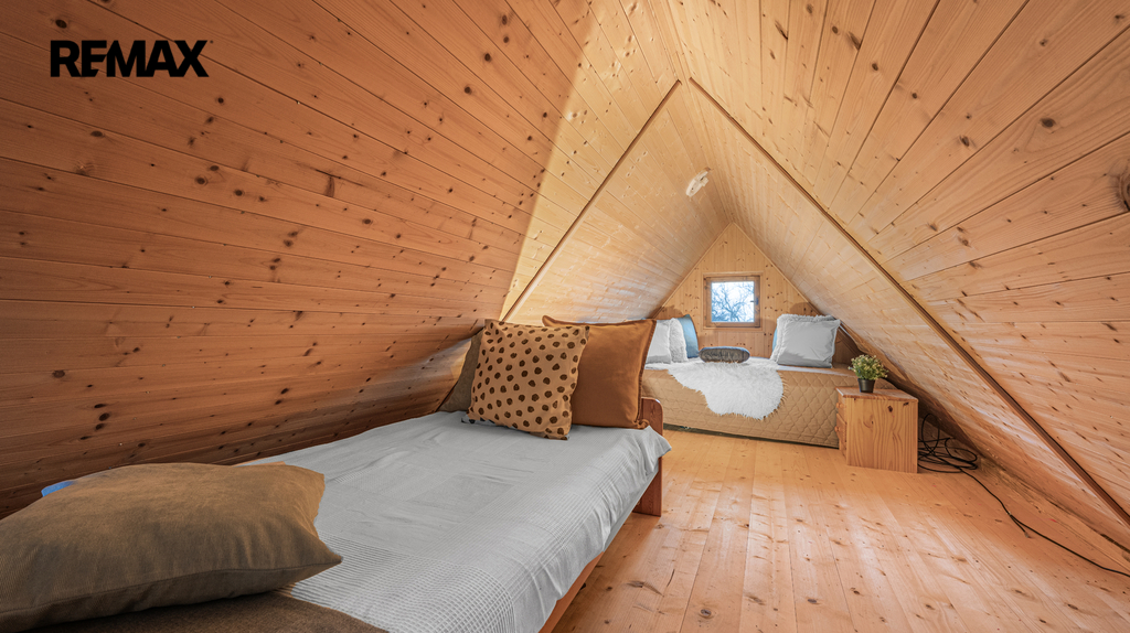 Objekt se skládá z hlavního obývacího pokoje a obytného podkroví, přičemž součástí je i přistavěná koupelna, která je plně zařízená a nabízí veškerý potřebný komfort. Kuchyň je vybavena potřebnými spotřebiči a nábytkem, což zajišťuje pohodlné vaření a každodenní využití. Topení zajišťují kamna, které dodávají chatě útulnou atmosféru během chladnějších měsíců. Dále je k dispozici technická místnost pro uskladnění potřebných věcí.