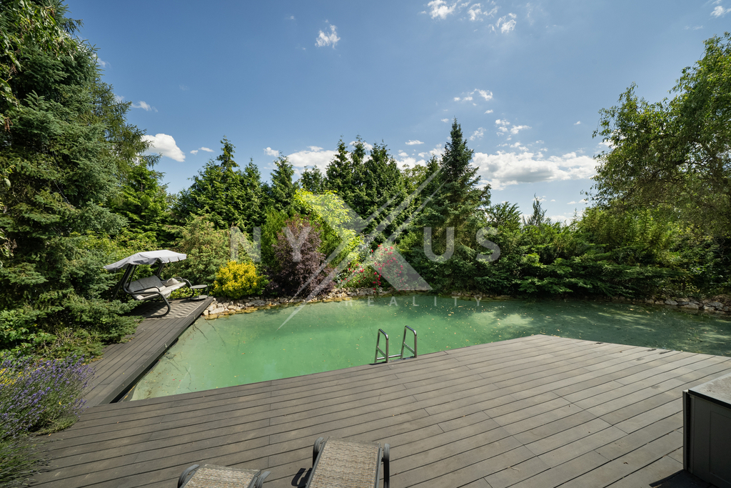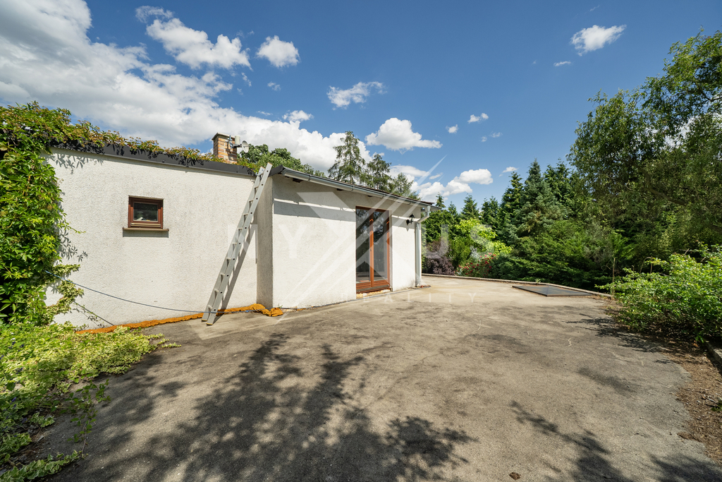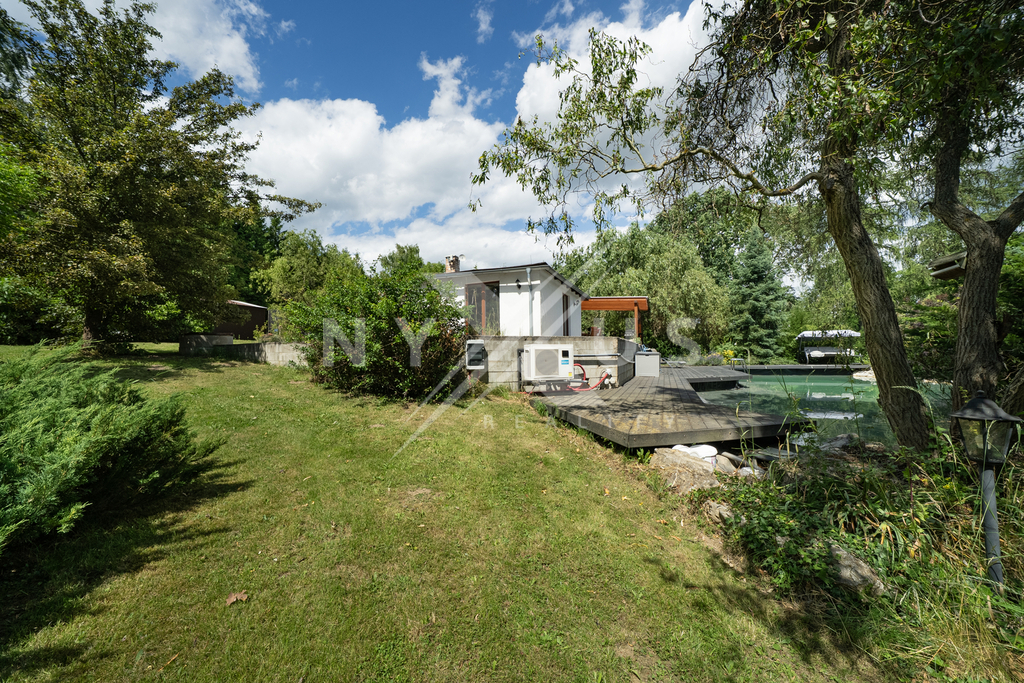 Výhodou je zděná chata a k relaxaci vybízí také krásný altán s vířivkou. Dále vlastní jezírko s filtrací a ohřevem na koupání , které je připojené na rozlehlou terasu 200 m² s pergolou, kde je příjemné dát si ranní kávu a užívat si klid tohoto kouzelného místa. Zahrada je osazena vzrostlými tújemi, okrasnými a ovocnými stromy. K dispozici je i projekt na rozšíření současné stavby. Na pozemku se nachází ještě další základová deska 100 m², kde byla zamýšlena výstavba garáží.