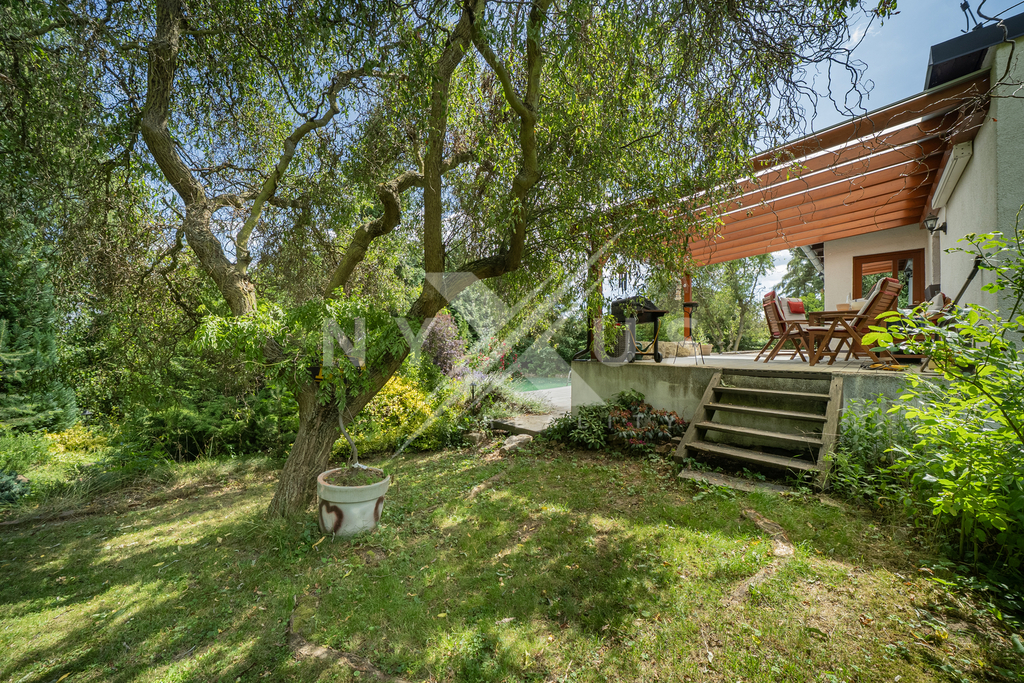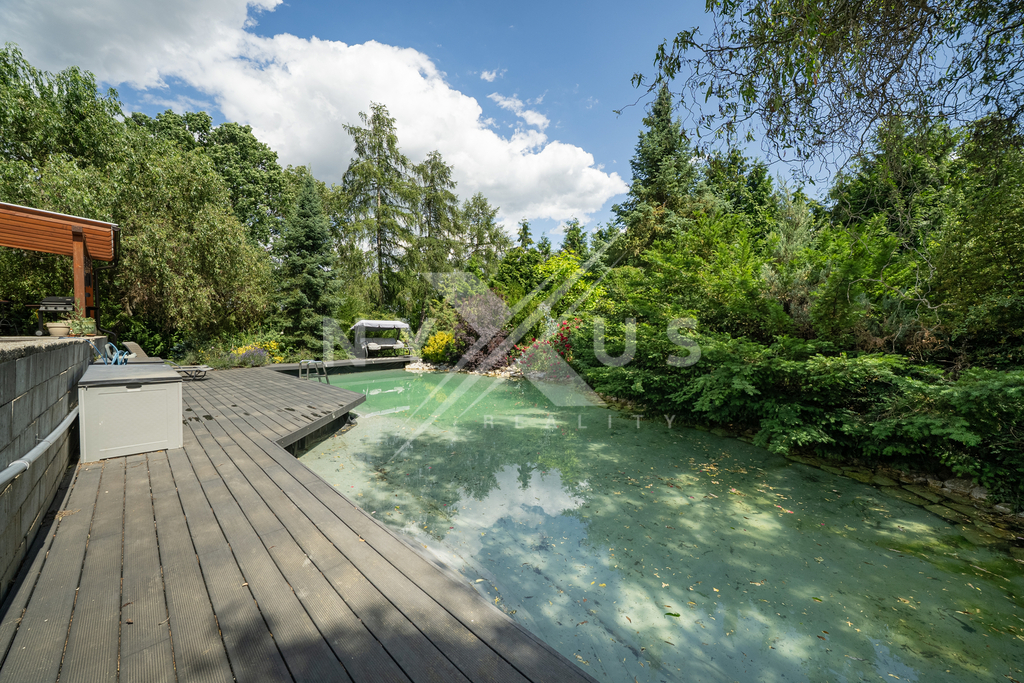Výhodou je zděná chata a k relaxaci vybízí také krásný altán s vířivkou. Dále vlastní jezírko s filtrací a ohřevem na koupání, které je připojené na rozlehlou terasu 200 m² s pergolou, kde je příjemné dát si ranní kávu a užívat si klid tohoto kouzelného místa. Zahrada je osazena vzrostlými tújemi, okrasnými a ovocnými stromy. K dispozici je i projekt na rozšíření současné stavby. Na pozemku se nachází ještě další základová deska 100 m², kde byla zamýšlena výstavba garáží.