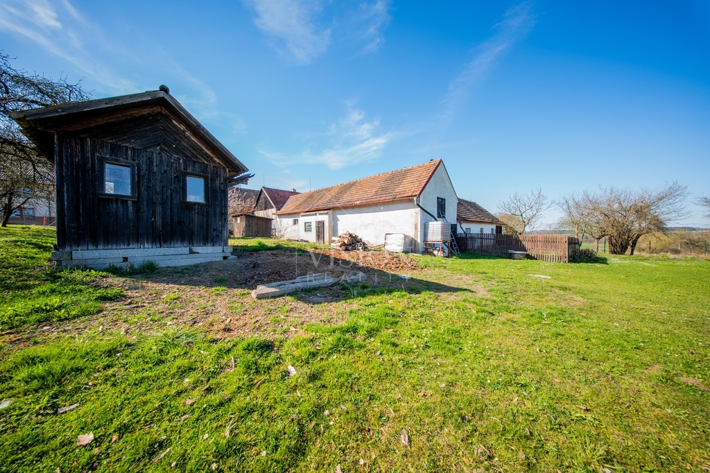 Velkou předností je uzavřený dvůr zajišťující soukromí a navazující hospodářské budovy, které poskytují široké možnosti využití – ať už pro skladování, dílnu nebo další zázemí.