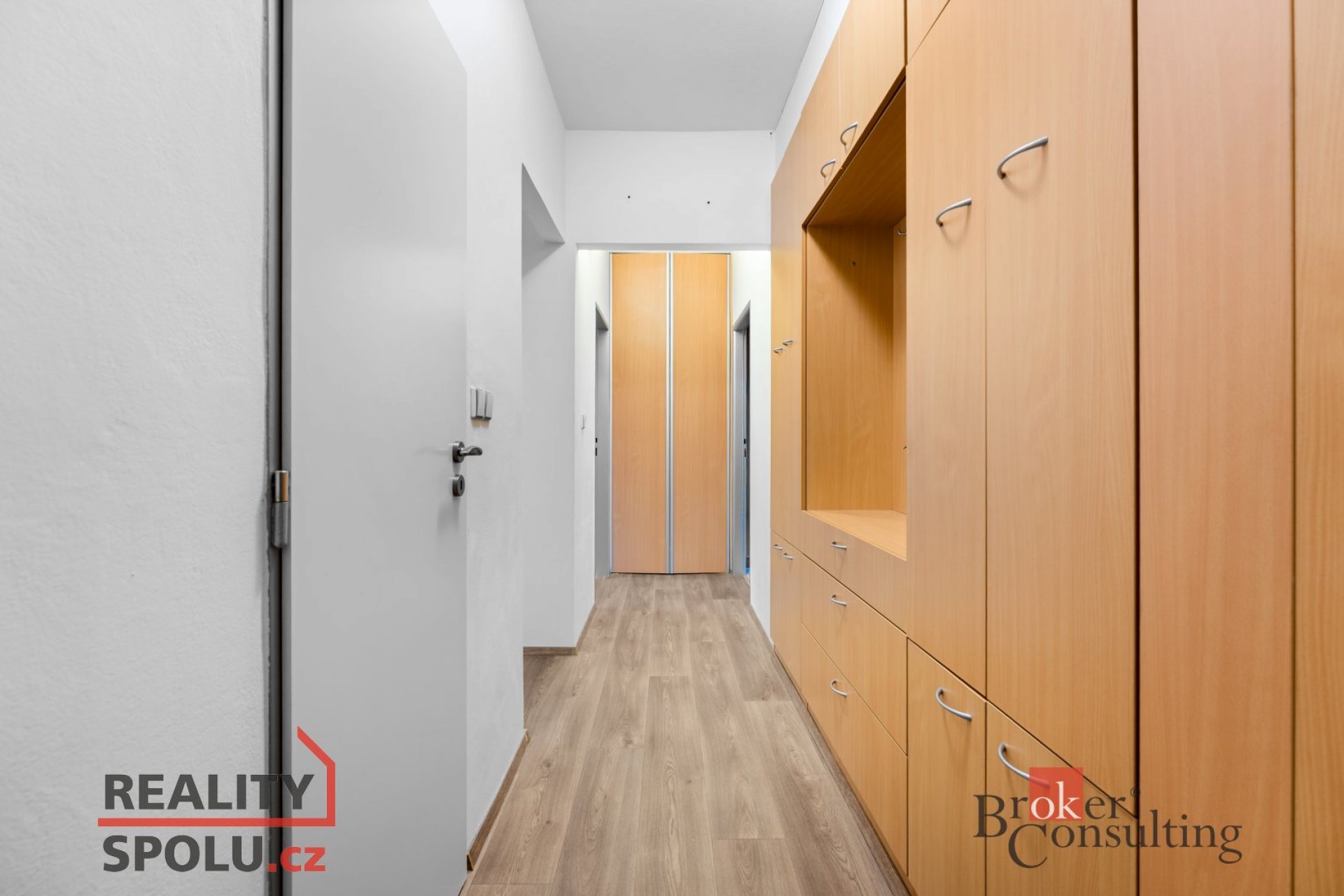 Byt se nabízí kompletně vybavený nábytkem i spotřebiči, což umožňuje okamžité nastěhování bez dalších investic. Již při vstupu Vás potěší velmi prostorná vestavěná skříň na míru, která nabízí dostatek úložného prostoru, a také praktická úložná komora o velikosti (1,7m²), umístěná na konci chodby.