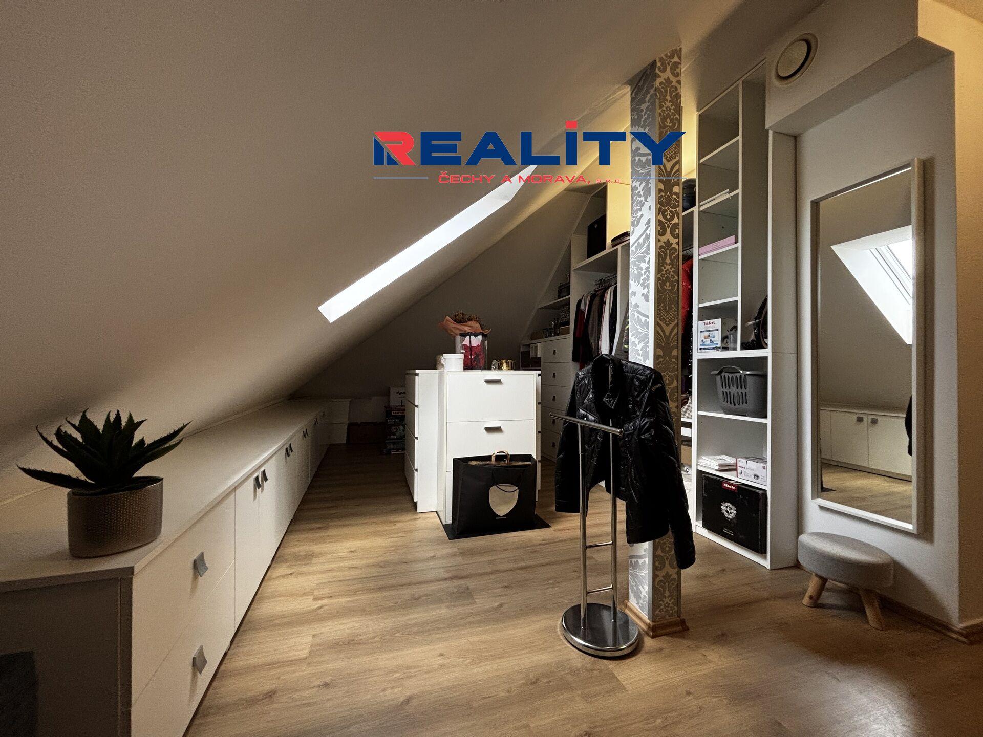 Nahoře: Ložnice s luxusním kobercem a dětský pokoj s realistickou tapetou lesa jsou propojeny krytou lodžií s výhledem. Je tu i dámská šatna s nábytkem na míru (který tu pro vás zůstane) a druhá koupelna se sprchovým koutem a wc, která je také zmodernizovaná a čeká na své první využití. Nahoře je příjemný prostor u schodiště, který může sloužit jako čítárna, místo pro cvičení, nebo další druh relaxu dle vašich fantazíí a potřeb.
