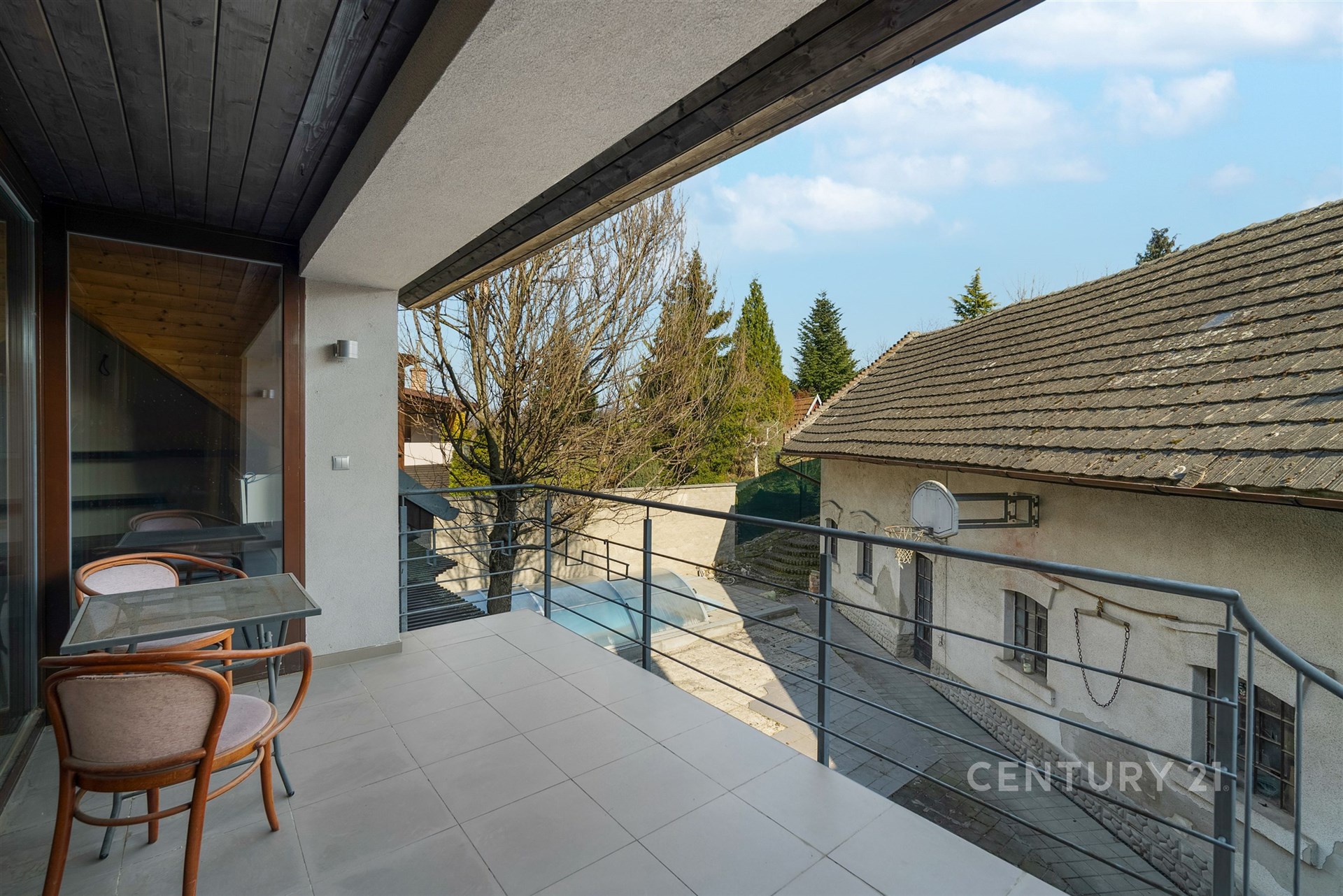 Za domem se nachází uzavřený dvůr s bazénem o rozměrech 5 × 3 m, zastřešením, protiproudem a filtrací. K dispozici je také pergola s venkovním grilem a navazující zahrada, která poskytuje dostatek soukromí i prostoru pro relaxaci. Součástí je rovněž hospodářská budova s dalším využitím.