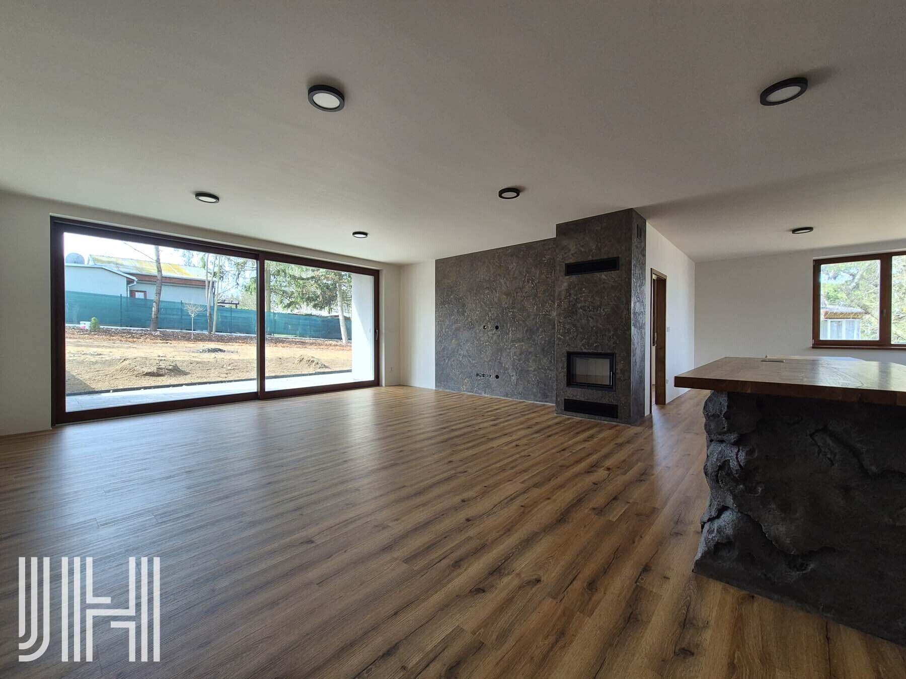 Nabízíme k pronájmu právě dokončenou novostavbu bungalovu na Plumlovské přehradě 5 km od Prostějova. Dům se nachází v rekreační lokalitě 5 min. od pláže, vel. 4+kk a podlahová plocha 165 m2 s dvojgaráží 45 m2 a parkovacími místy před domem. Dům má zádveří se šatnou a vstupem do garáže, prostorný exkluzívní obývací pokoj s prosklenou stěnou do zahrady a krbem, kuchyňskou linkou s designovým ostrůvkem a jídelnou. Po chodbě domu se dostanete dále do technické místnosti s prádelnou, samostatného WC, koupelny (vana, 2x umyvadlo, sprch. kout a WC) a dvou pokojů. Z jídelny je vstup do prostorného pokoje oddělenou šatnou, nebo pracovnou. Celý dům je orientovaný do zahrady na jižní a západní stranu. Dům je vytápěn podlahovým vytápěním se zdrojem tepelné čerpadlo včetně ohřevu teplé vody, voda z vlastní studny, kanalizace do jímky. Dům má vinylové dílcové podlahy, kuchyňskou linku včetně spotřebičů, vnitřní žaluzie, zabezpečovací zařízení. Zahrada je oplocená, vstup možný přes dům nebo bránou vedle domu, bude zatravněná, osázená keři a vzrostlými stromy s terasou přístupnou z obývacího pokoje. Podlaha v garáži bude dokončeny epoxidovou umyvatelnou stěrkou. PENB – A. Internetové připojení v ceně nájemného. Záloha na energie: 5.000 Kč/měs. Dům dokončen, ihned k nastěhování. Zast. plocha: 340 m2, zahrada 827 m2.