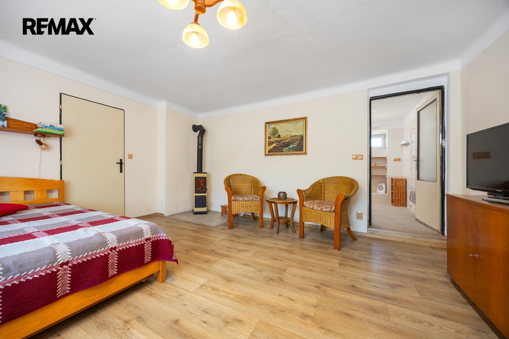 Dva samostatné pokoje (12,6 a 23,4 m²) – každý s vlastními krbovými kamny