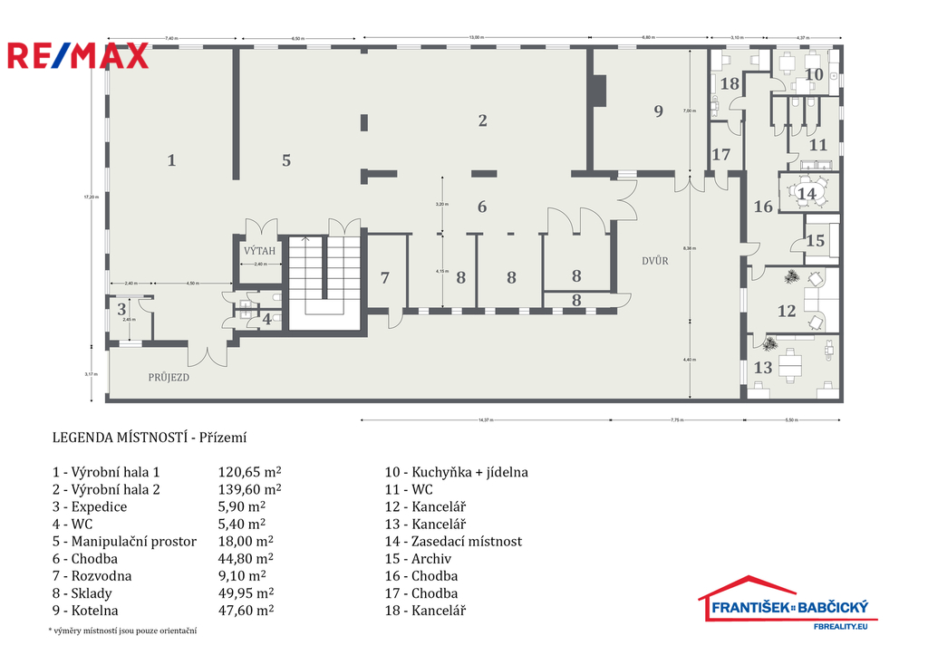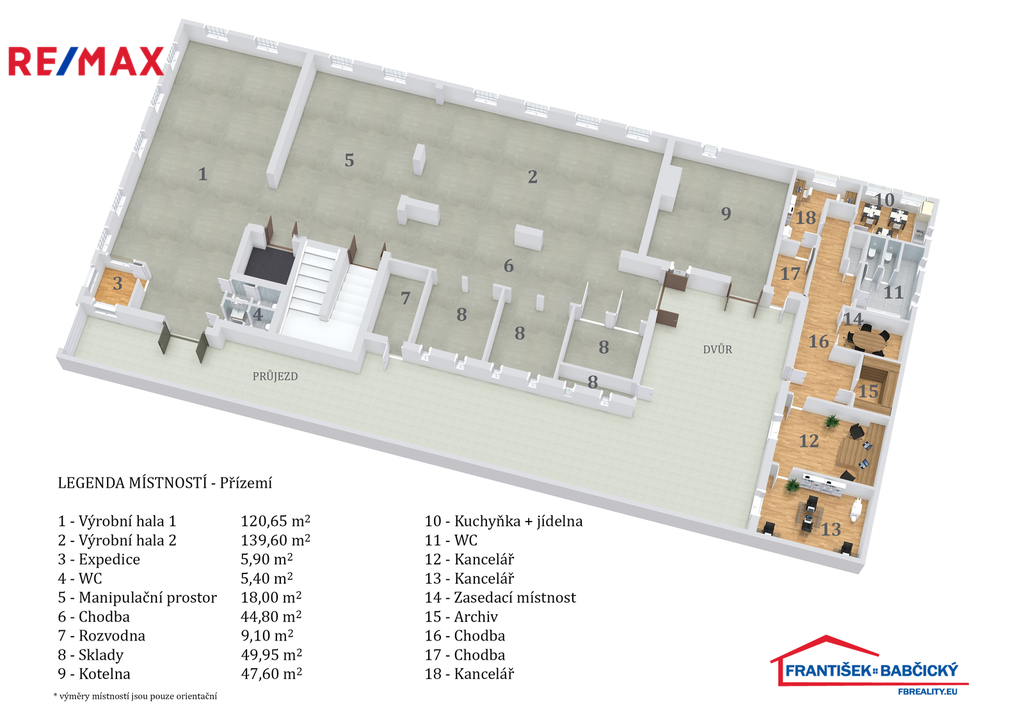 - Plocha kanceláří: 1161 m²