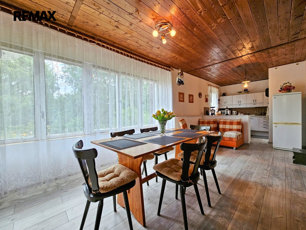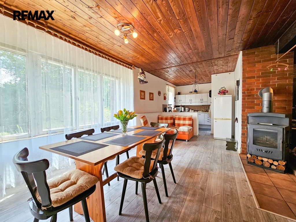 A jeden z těchto domů vám chci představit. Stojí v zahradě dál od silnice a díky tomu máte mnohem větší soukromí. Majitelé zde odvedli kus práce a během let přestavěli bývalou stodolu na útulnou chalupu, která nabízí velmi příjemné prostředí pro rekreaci i trvalé bydlení. Je ideální pro větší rodinu, která tráví ráda čas pohromadě, ale zároveň poskytne každému koutek pro sebe.