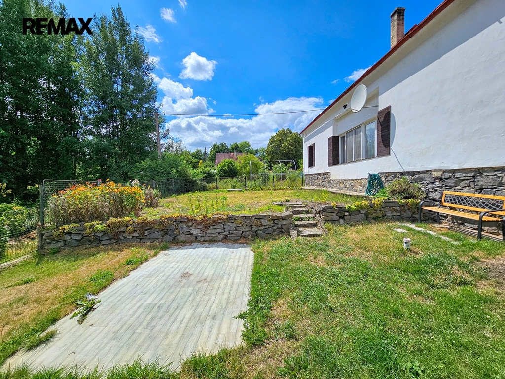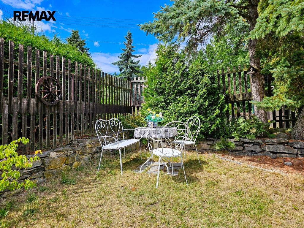 Chalupa, to je hlavně pobyt venku. K posezení láká přímo u domu stinná pergola s krbem. Samotná zahrada kolem domu je dostatečně velká a rovinatá, je zde místo na skleník, bazén i dětské hry. Od Státního pozemkového fondu je pronajat sousední pozemek o výměře 376 m2, takže místa je zde opravdu dost.