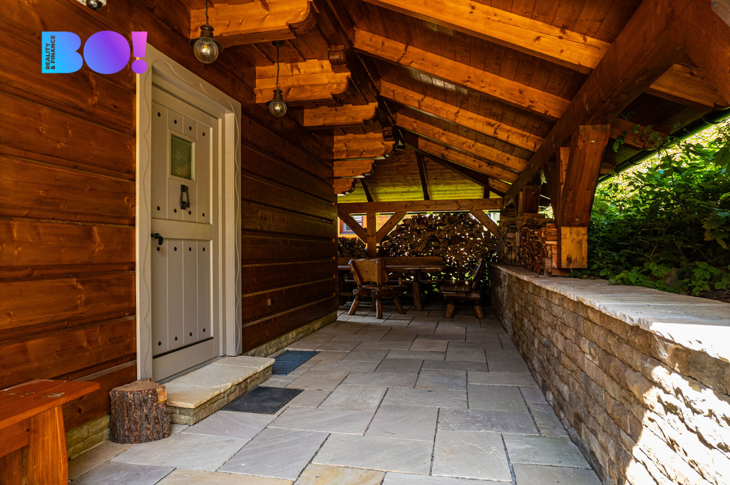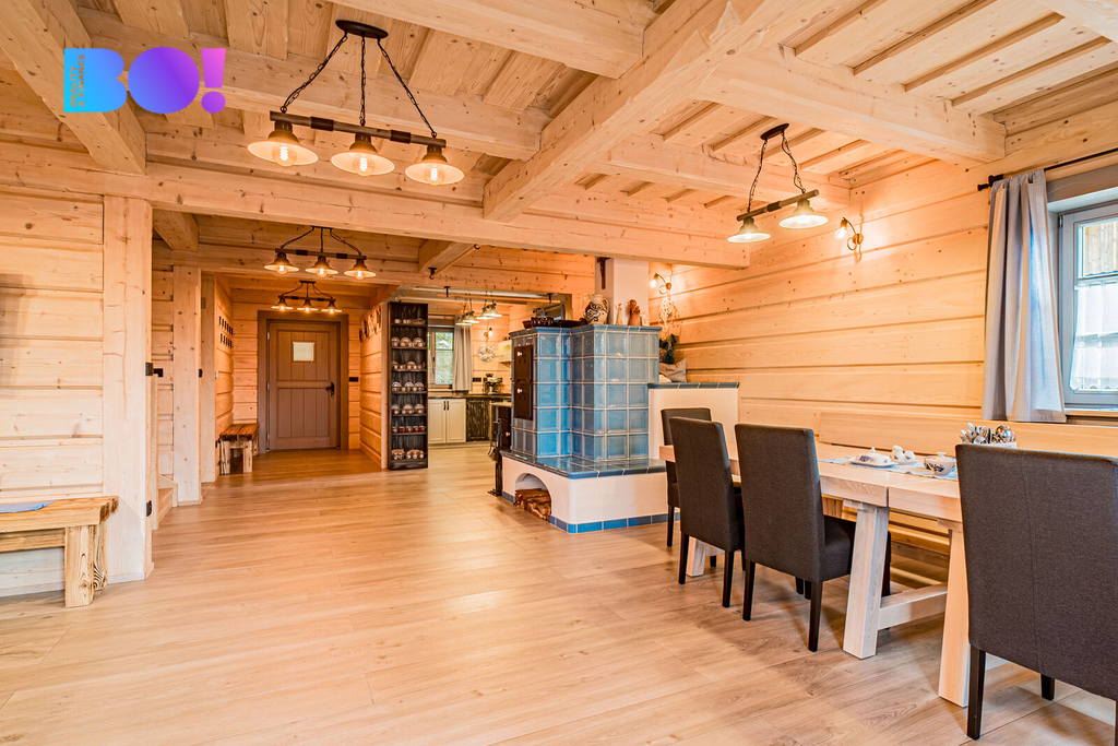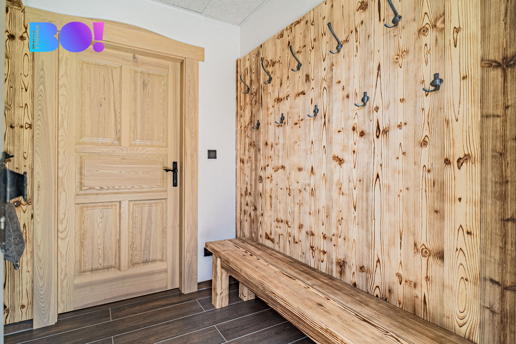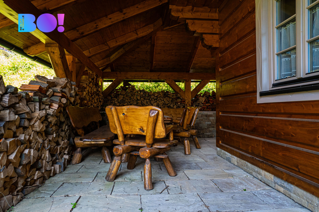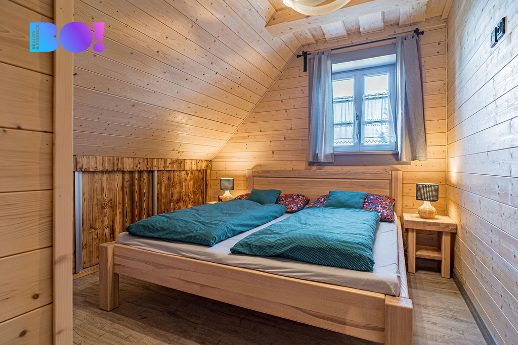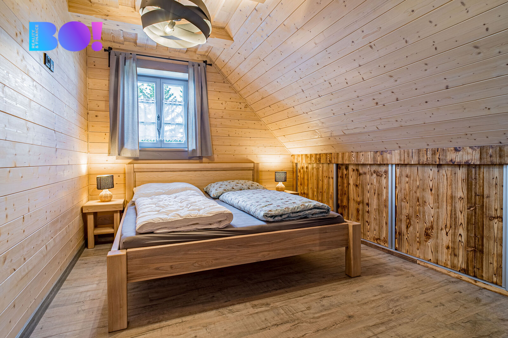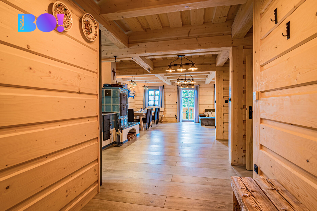 Srubová chata nabízí užitnou plochu přes 270 m² a prodává se kompletně zařízená. Komfort zajišťuje elektrické podlahové vytápění s rovnoměrným rozložením tepla, doplněné o kachlová kamna pro rychlé vyhřátí a autentickou atmosféru. Odpad je sveden do septiku, střecha je pokryta kvalitním Drdlíkovým šindelem, který podtrhuje tradiční horský charakter stavby a zároveň poskytuje spolehlivou ochranu před nepříznivým počasím. Prostorné venkovní terasy nabízejí příjemné zázemí pro posezení až pro 10 a více osob.