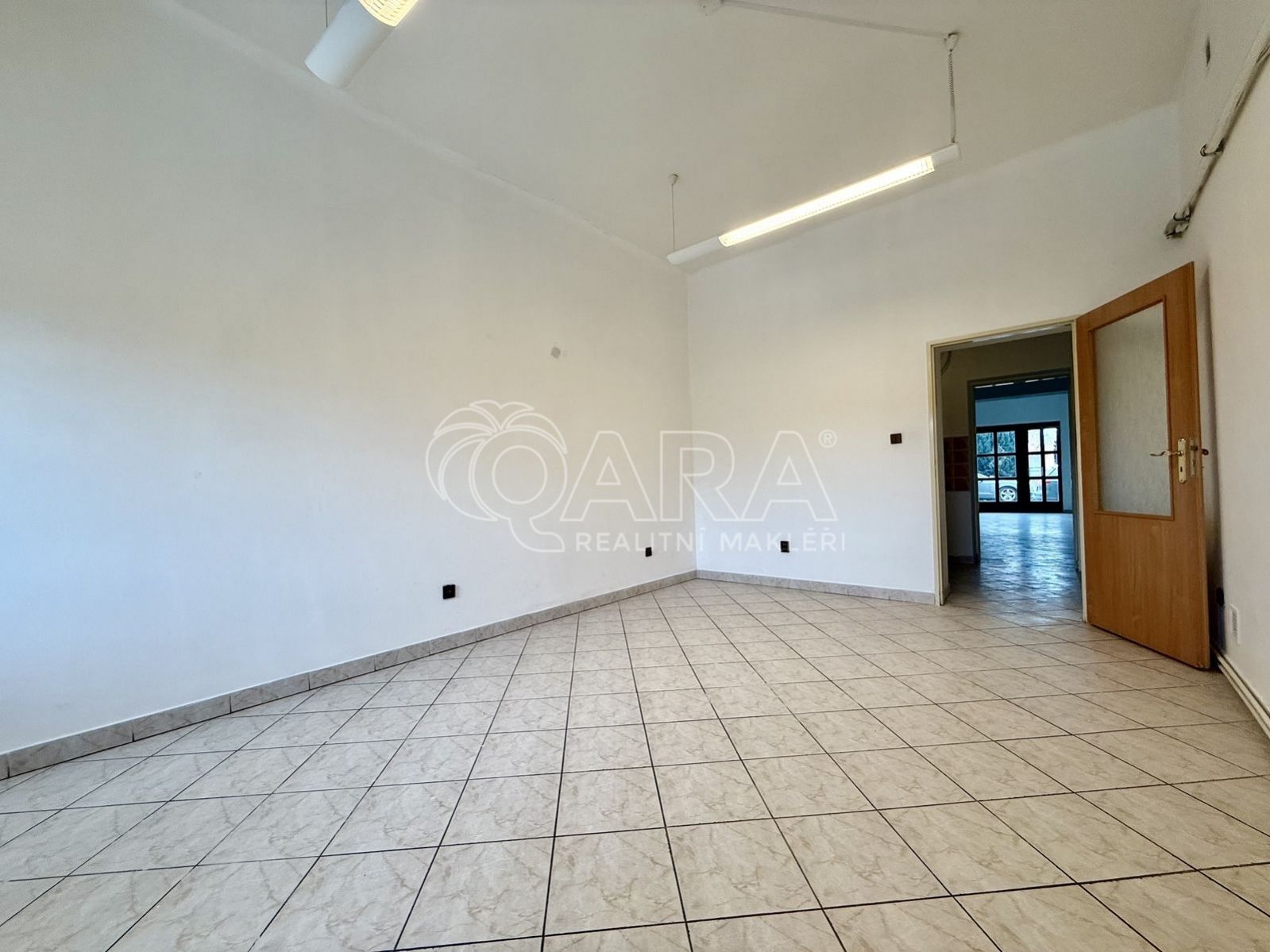 Prostor má praktické a přehledné dispoziční řešení. Hlavní místnost o výměře 38.5 m2 nabízí otevřený a světlý prostor vhodný pro provozovnu, kancelář nebo obchod. Na ni navazuje druhá samostatná místnost o velikosti 18 m2, kterou lze využít jako další prodejní část, kancelář, zázemí nebo sklad. Součástí prostoru je kuchyňka o výměře 5.7 m2 a sociální zázemí s WC a umyvadlem o celkové ploše 2.85 m2.