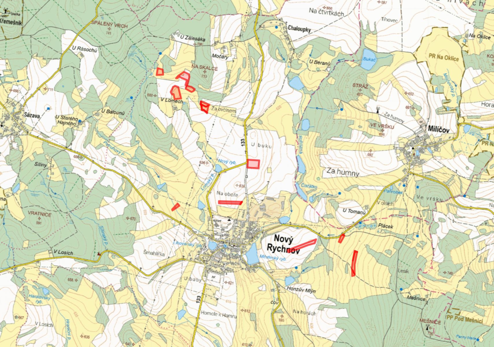 Katastrální území Nový Rychnov, výměra 73 681 m2