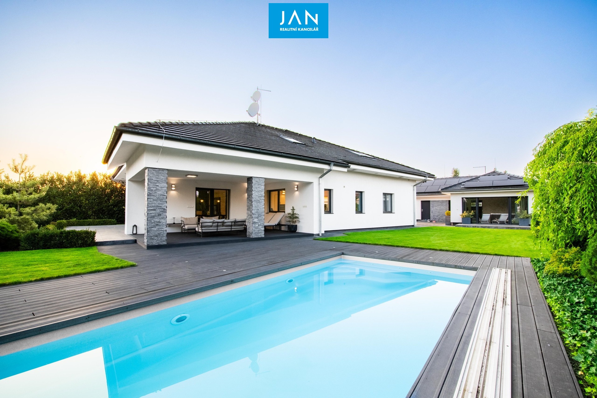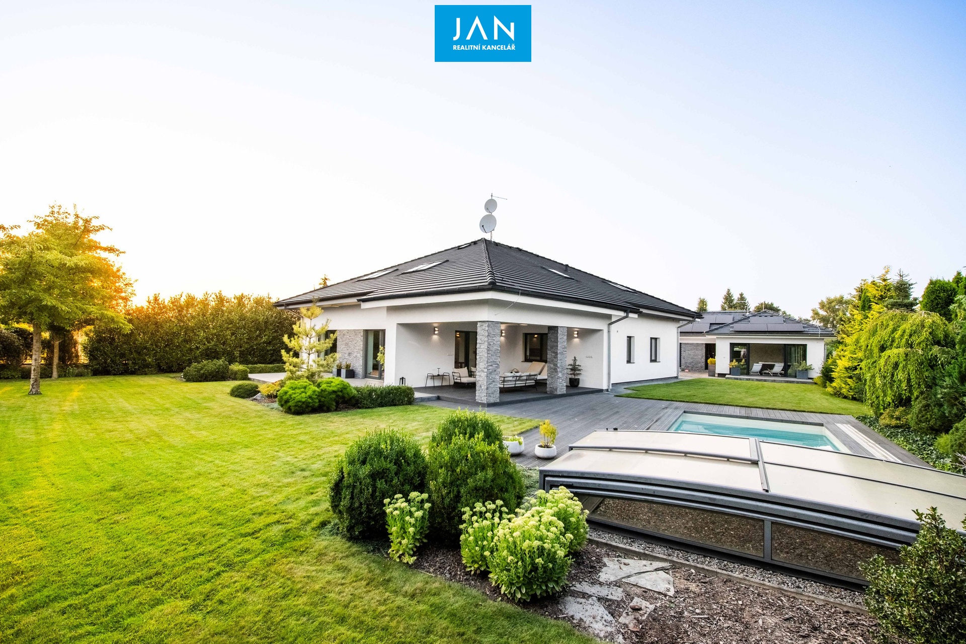 Tento moderní a reprezentativní rodinný dům s wellness, bazénem a špičkovými technologiemi představuje ideální spojení komfortu, soukromí a skvělé dostupnosti do hlavního města.