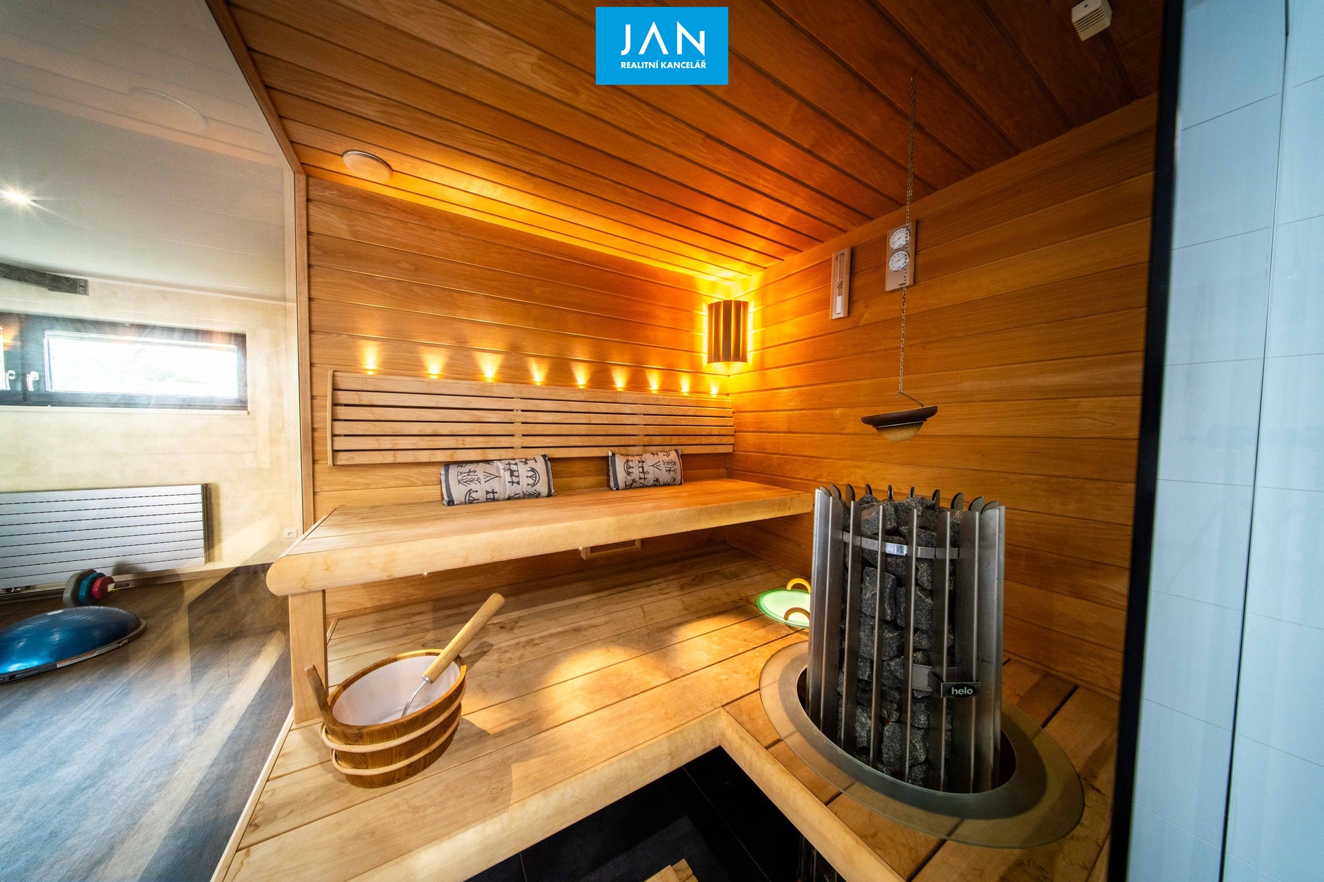 - samostatný wellness dům (57 m²) – posilovna, sauna, vířivka, odpočinková místnost, koupelna s WC
