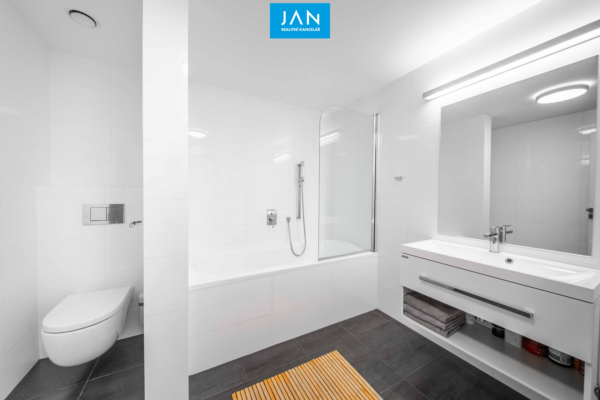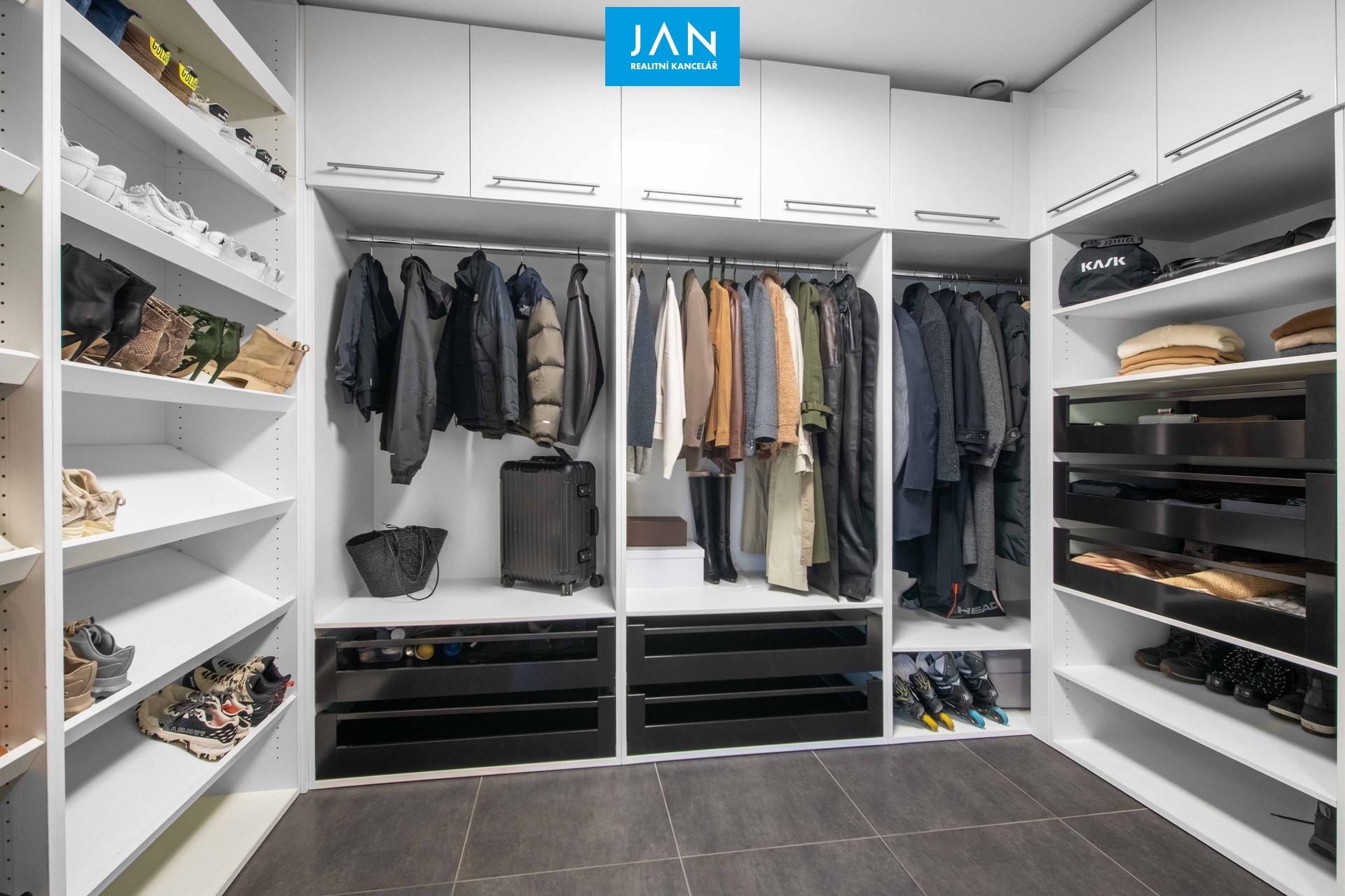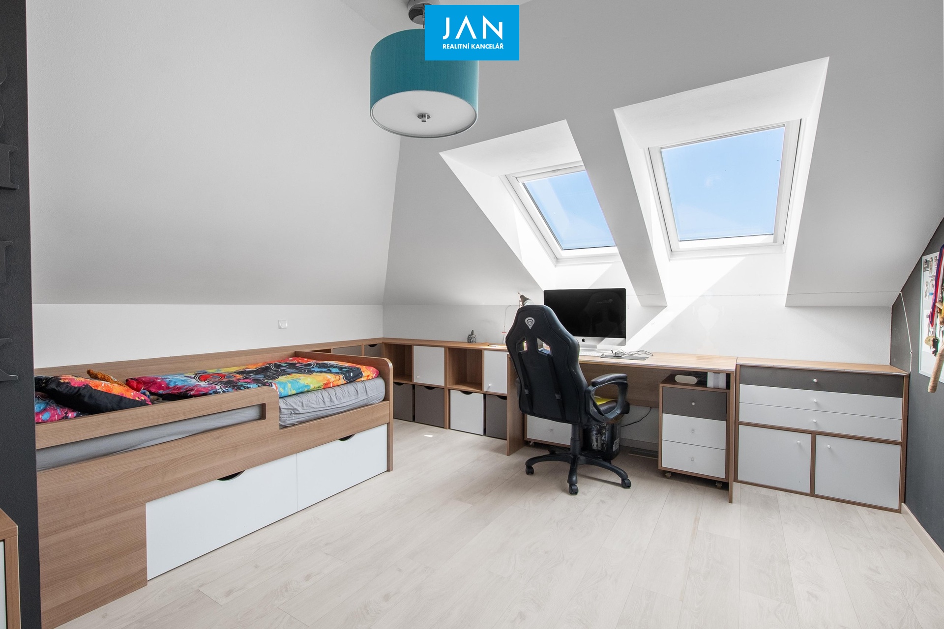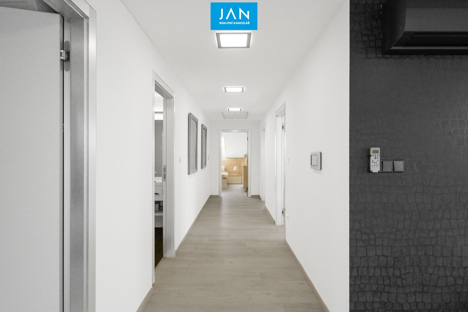 4 prostorné pokoje, z toho tři s vlastní šatnou, galerie, dvě koupelny s WC.