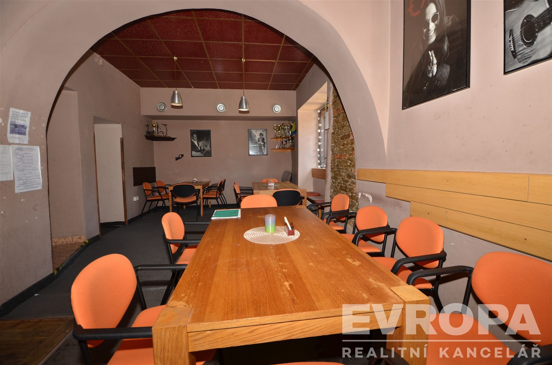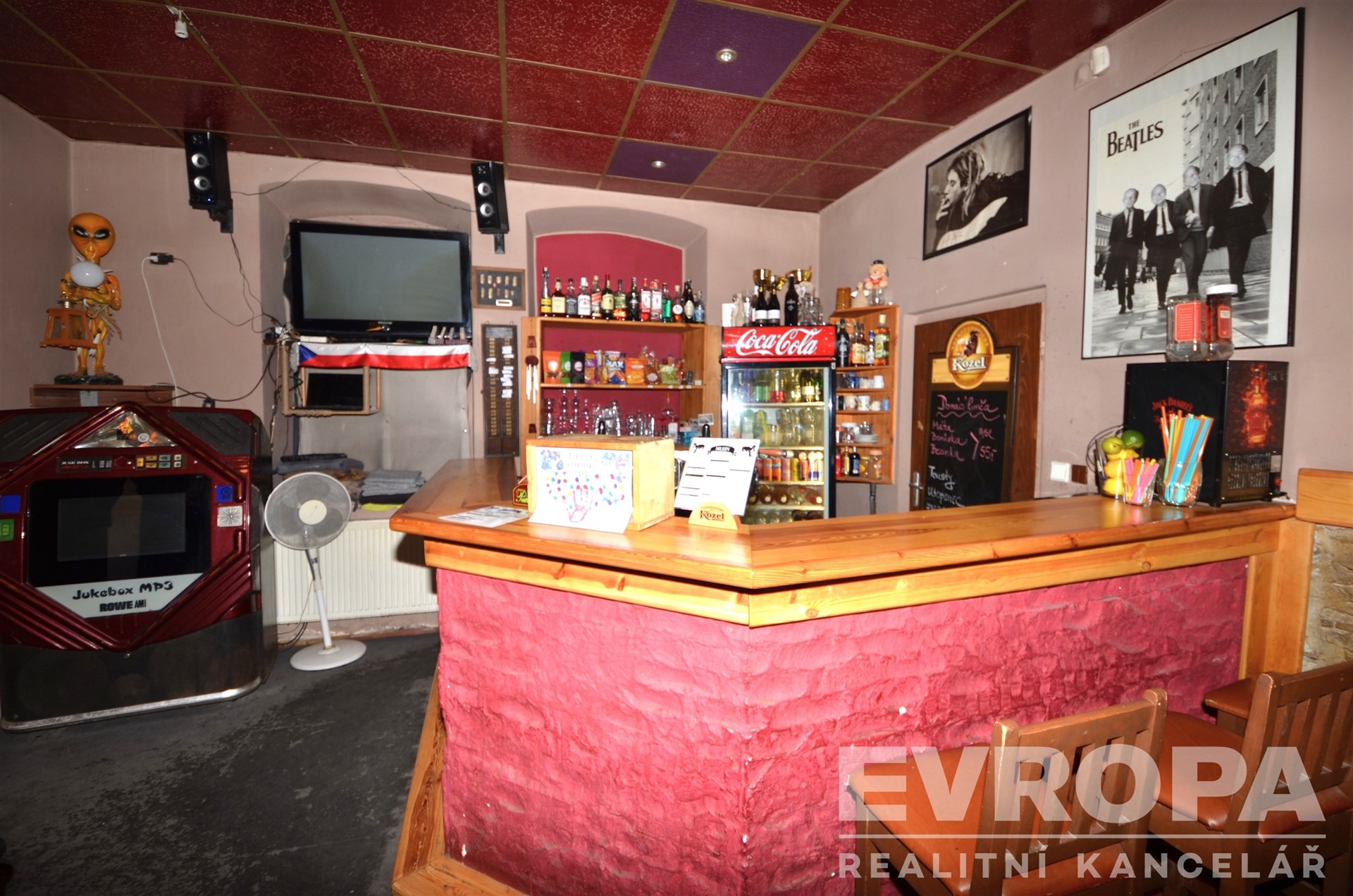 V přízemí se nachází zkolaudovaný restaurační provoz, s veškerým zázemím (bar, kuchyně, toalety), prostor je momentálně pronajatý a nájemce využívá také prostory v suterénu a venkovní zahrádku.