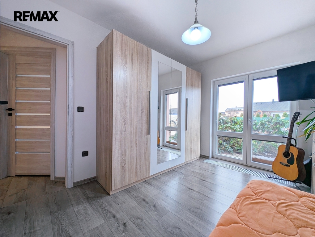 Přízemí (103 m²) je dokončené – nachází se zde prostorný obývací pokoj s kuchyňským koutem, dvě samostatné ložnice, koupelna, technická místnost a garáž. Celé patro má podlahové vytápění včetně garáže.