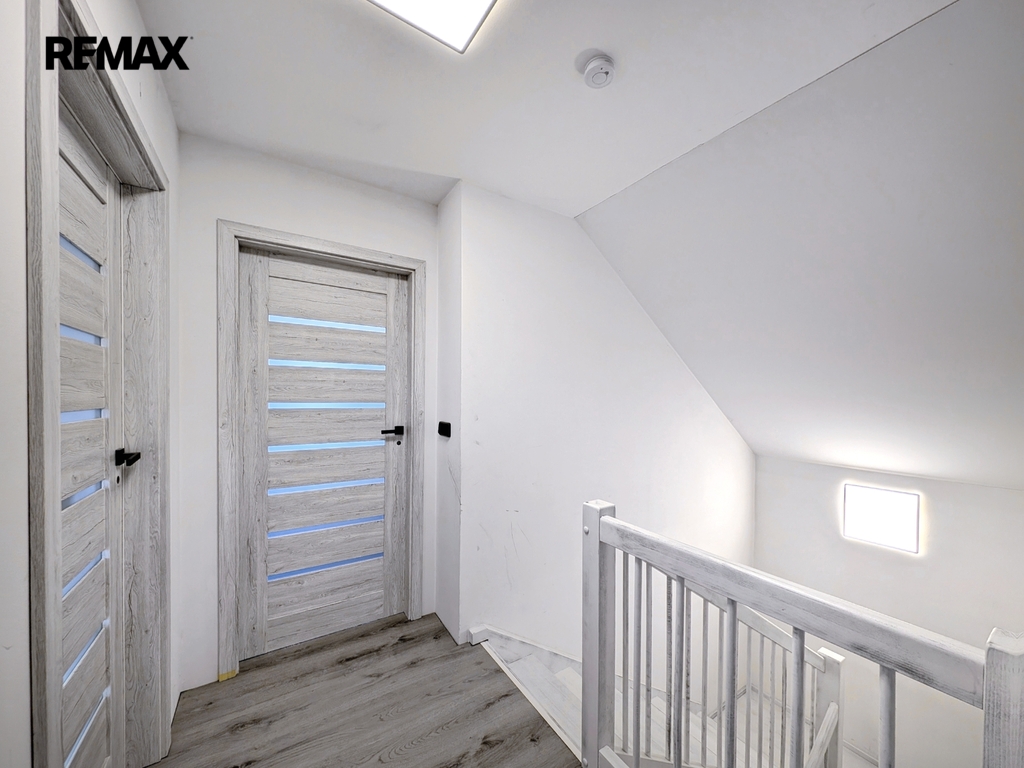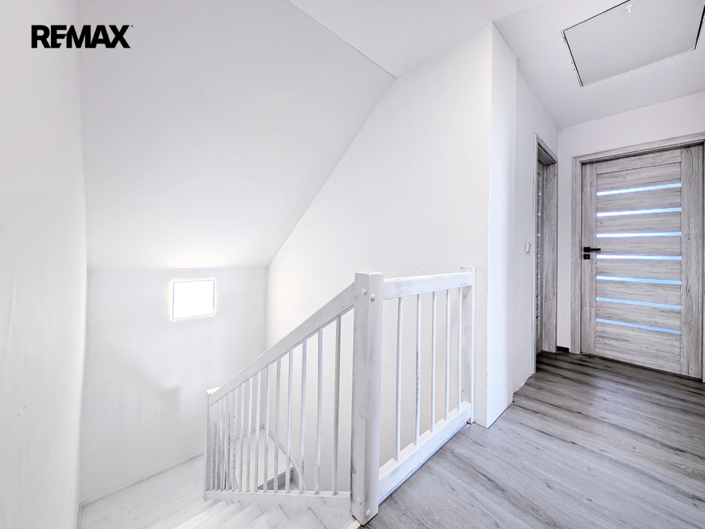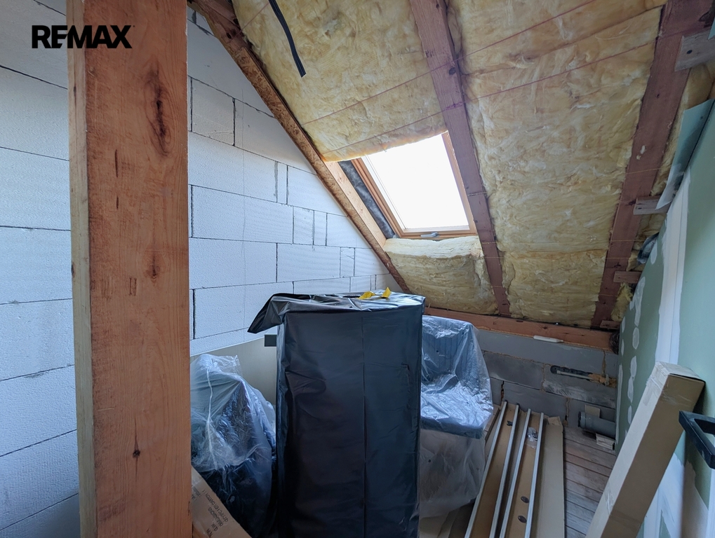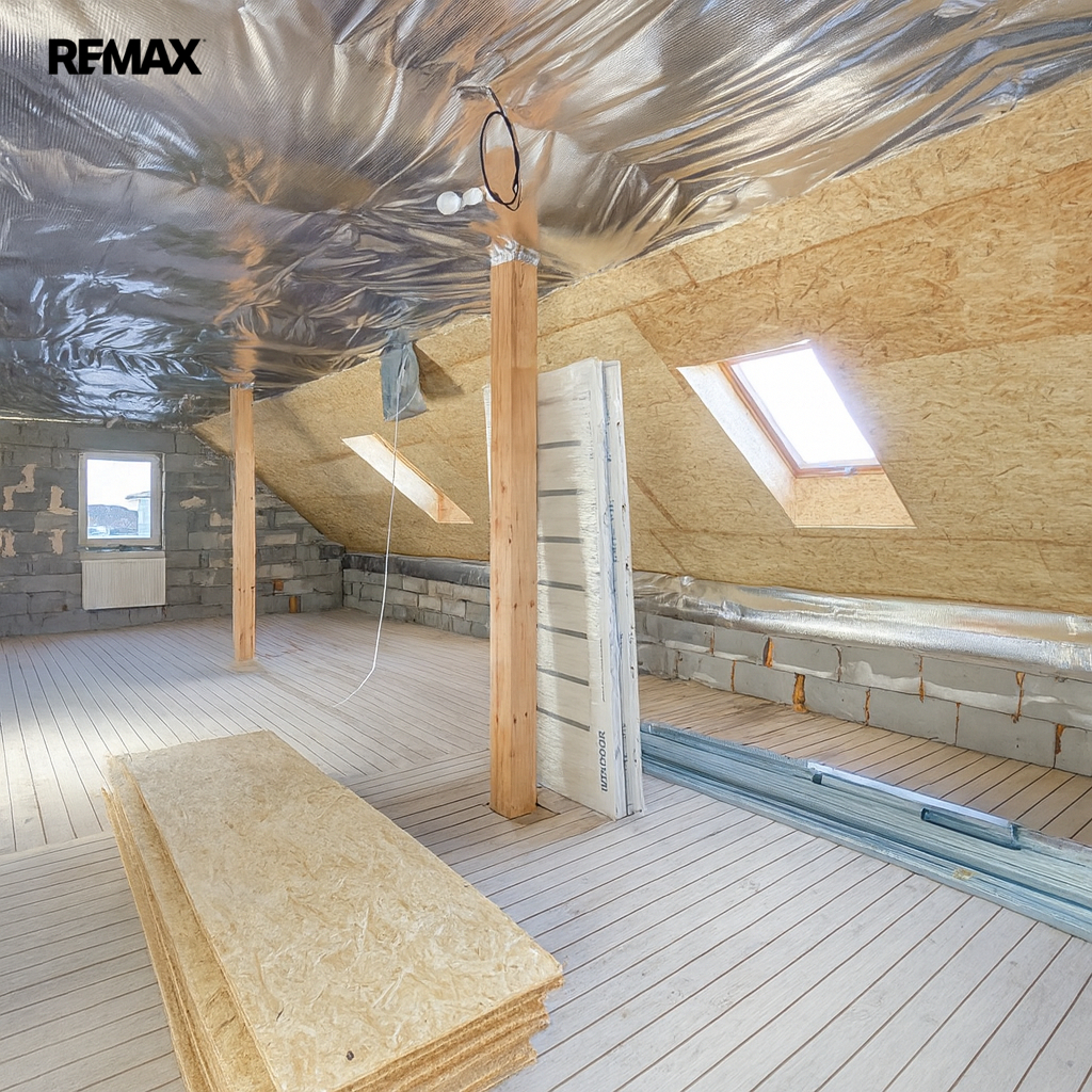 Horní patro je aktuálně kolaudováno jako půda a je ve fázi rekonstrukce na obytný prostor. K prodeji budou kolmé stěny zatelpeny a natáhnuté sádrokartonem. V 2NP se nachází zateplení a jsou zde umístěna okna včetně těch střešních, zároveň je zde připravena podlahová krytina na celý vršek bez koupelny. Lze zde vybudovat až tři obytné místnosti a samostatnou koupelnu podle vlastních představ. Druhé patro nabízí možnost až 90 m². Horní patro je připraveno k dokončení dle vlastních představ budoucího majitele. Odhad nákladů na dokončení cca 200 000 Kč